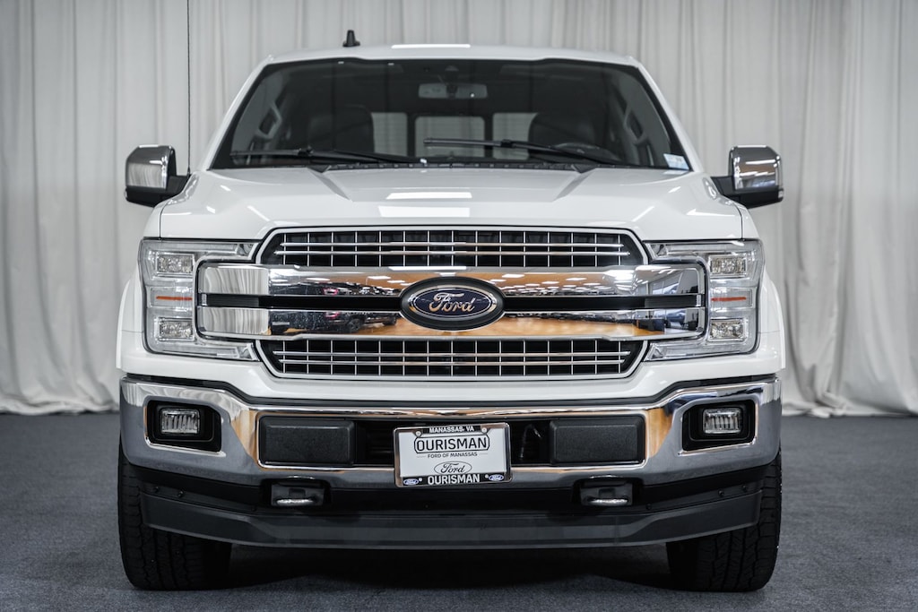 PANORAMIC ROOF / DUAL SUNROOFS / TWIN PANEL MOONROOF, POWER MOONROOF / SUNROOF / POWER TILT SLIDING ROOF, VOICE ACTIVATED NAVIGATION, NAVIGATION / GPS / NAV, BLIS / BLIND SPOT MONITORING / BLIND SIDE ALERT, DYNAMIC RADAR CRUISE CONTROL / ADAPTIVE CRUISE CONTROL / SMART CRUISE CONTROL, REARVIEW CAMERA / BACK UP CAMERA / REVERSE CAMERA, REAR VIEW CAMERA WDYNAMIC GUIDELINES, ANDROID AUTO & APPLE CARPLAY, LEATHER SEATS, HEATED & COOLED FRONT ROW SEATS, HEATED FRONT ROW SEATS, HEATED SECOND ROW SEATS, POWER WINDOWS & LOCKS, FOUR WHEEL DRIVE / 4WD / 4X4, STEERING WHEEL AUDIO CONTROLS, CRUISE CONTROL, SYNC 3, REMOTE START, PUSH-BUTTON START, POWER TAILGATE LOCK, POWER SLIDING REAR WINDOW, BLUETOOTH AUDIO STREAMING, HEATED STEERING WHEEL, ECO BOOST ENGINE, DUAL ZONE A/C CONTROLS, BLUETOOTH, BACK UP SENSORS, B&O SOUND SYSTEM, AUTO HIGH BEAMS, 36 GALLON TANK / 36 GAL TANK, 145" WHEELBASE, 110V/400W Outlet, 2nd Row Heated Seats, 3.55 Axle Ratio, 4-Wheel Disc Brakes, ABS brakes, Adaptive Cruise Control, Air Conditioning, Auto High-beam Headlights, Automatic temperature control, BLIS Blind Spot Information System, Brake assist, Chrome 2-Bar Grille w/4 Minor Bars, Chrome Angular Step Bars, Chrome Door & Tailgate Handles w/Body-Color Bezel, Chrome Skull Caps on Exterior Mirrors, Compass, Driver door bin, Electronic Stability Control, Equipment Group 502A Luxury, Extended Range 36 Gallon Fuel Tank, Exterior Parking Camera Rear, Front dual zone A/C, Front reading lights, Fully automatic headlights, GVWR: 6,600 lbs Payload Package, Heated front seats, Heated Steering Wheel, Lariat Chrome Appearance Package, Leather-Trimmed Bucket Seats, LED Sideview Mirror Spotlights, Low tire pressure warning, Navigation System, Power driver seat, Power Glass Sideview Mirr w/Chrome Skull Caps, Power steering, Power Tilt/Telescoping Steering Column w/Memory, Power windows, Quad Beam LED Headlamps & LED Taillamps/Fog Lamps, Radio: AM/FM Stereo w/6 Speakers, Radio: B&O Sound System by Bang & Olufsen, Rain-Sensing Wipers, Rear window defroster, Remote keyless entry, Remote Start System w/Remote Tailgate Release, Reverse Sensing System, Single-Tip Chrome Exhaust, SiriusXM Radio, Speed control, Speed-sensing steering, Split folding rear seat, Steering wheel mounted audio controls, SYNC 3, Traction control, Twin Panel Moonroof, Universal Garage Door Opener, Variably intermittent wipers, Ventilated front seats, Wheels: 18" Chrome-Like PVD, Windshield Wiper De-Icer. 2019 Ford F-150 Lariat Adaptive Cruise Pano Roof 4WD White Platinum Metallic Tri-Coat 2.7L V6 EcoBoost