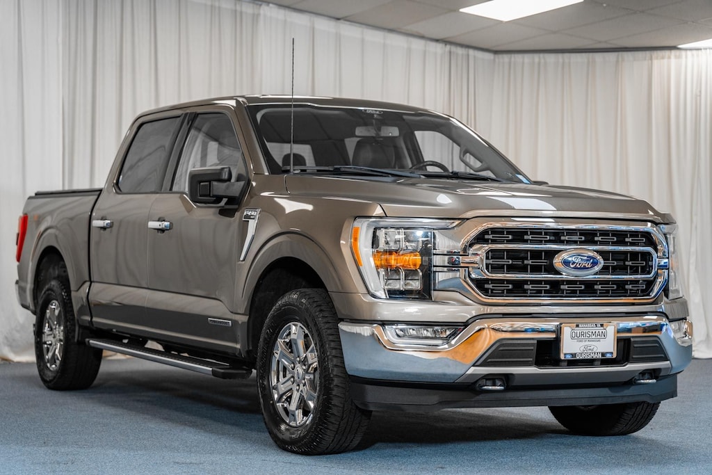 BLIS / BLIND SPOT MONITORING / BLIND SIDE ALERT, LANE DEPARTURE WARNING, LANE DEPARTURE ALERT / LANE KEEPING ALERT, REARVIEW CAMERA / BACK UP CAMERA / REVERSE CAMERA, REAR VIEW CAMERA WDYNAMIC GUIDELINES, ANDROID AUTO & APPLE CARPLAY, POWER WINDOWS & LOCKS, FOUR WHEEL DRIVE / 4WD / 4X4, STEERING WHEEL AUDIO CONTROLS, CRUISE CONTROL, SYNC 4, REMOTE START, POWER TAILGATE LOCK, POWER SLIDING REAR WINDOW, BLUETOOTH AUDIO STREAMING, BACK UP SENSORS, AUTO HIGH BEAMS, 145" WHEELBASE, 10-Way Power Driver & Passenger Seats, 2-Bar Style Grille w/Chrome 2 Minor Bars, 4-Wheel Disc Brakes, 6 Speakers, 8" Productivity Screen in Instrument Cluster, ABS brakes, Air Conditioning, Auto High-beam Headlights, Auto-Dimming Rear-View Mirror, Brake assist, Bumpers: chrome, Chrome Door & Tailgate Handles w/Body-Color Bezel, Chrome Single-Tip Exhaust, Chrome Step Bars, Class IV Trailer Hitch Receiver, Compass, Dual Zone Automatic Temperature Control, Electronic Locking w/3.73 Axle Ratio, Equipment Group 302A High, Exterior Parking Camera Rear, Front reading lights, Fully automatic headlights, GVWR: 7,350 lbs Payload Package, Heated door mirrors, Heated Front Seats, Integrated Trailer Brake Controller, Intelligent Access w/Push Button Start, Leather-Wrapped Steering Wheel, LED Box Lighting w/Zone Lighting, LED Reflector Headlamps, LED Sideview Mirror Spotlights, Low tire pressure warning, Onboard 400W Outlet, Panic alarm, Power Glass Heated Sideview Mirrors, Power steering, Power windows, Power-Sliding Rear Window, Pro Trailer Backup Assist, Radio: AM/FM SiriusXM w/360L, Rear Under-Seat Storage, Remote keyless entry, Remote Start System w/Remote Tailgate Release, SecuriCode Drivers Side Keyless-Entry Keypad, Security system, Speed control, Speed-sensing steering, Steering wheel mounted audio controls, SYNC 4 w/Enhanced Voice Recognition, Tough Bed Spray-In Bedliner, Traction control, Trailer Tow Package, Variably intermittent wipers, Wheels: 18" Chrome-Like PVD, XLT Chrome Appearance Package. 2021 Ford F-150 XLT 4WD Stone Gray Metallic 3.5L PowerBoost Full-Hybrid V6