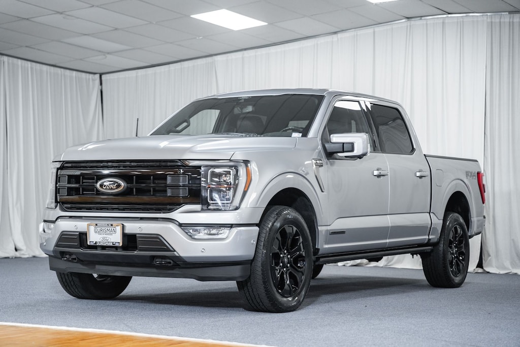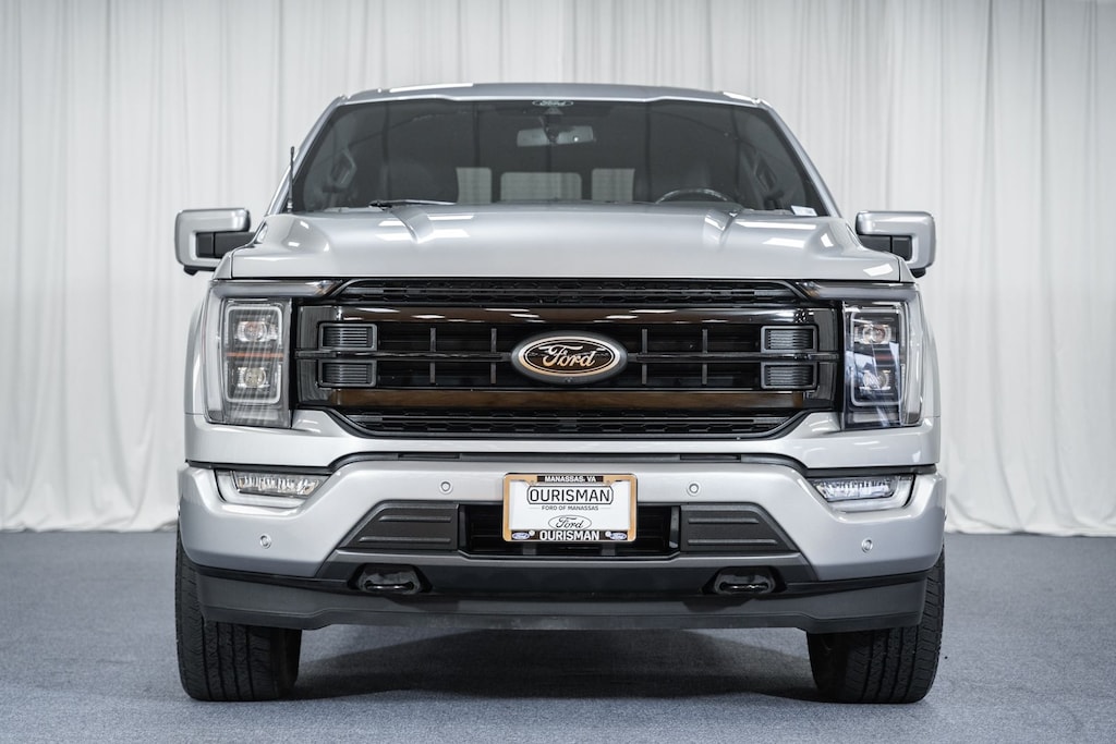 BLIS / BLIND SPOT MONITORING / BLIND SIDE ALERT, DYNAMIC RADAR CRUISE CONTROL / ADAPTIVE CRUISE CONTROL / SMART CRUISE CONTROL, LANE DEPARTURE WARNING, LANE DEPARTURE ALERT / LANE KEEPING ALERT, REARVIEW CAMERA / BACK UP CAMERA / REVERSE CAMERA, REAR VIEW CAMERA WDYNAMIC GUIDELINES, ANDROID AUTO & APPLE CARPLAY, HEATED & COOLED FRONT ROW SEATS, HEATED FRONT ROW SEATS, HEATED SECOND ROW SEATS, POWER WINDOWS & LOCKS, FOUR WHEEL DRIVE / 4WD / 4X4, STEERING WHEEL AUDIO CONTROLS, CRUISE CONTROL, MAX TRAILER TOW PACKAGE, SYNC 4, WIRELESS CHARGING, REMOTE START, REAR CROSS TRAFFIC ALERT, PUSH-BUTTON START, POWER TAILGATE LOCK, POWER SLIDING REAR WINDOW, POWER RUNNING BOARDS / POWER DEPLOYABLE RUNNING BOARDS / AUTOMATIC RUNNING BOARDS, BLUETOOTH & BLUETOOTH STREAMING, HEATED STEERING WHEEL, HILL LAUNCH START ASSIST, BLUETOOTH, BACK UP SENSORS, BLUECRUISE, B&O SOUND SYSTEM, AUTO HIGH BEAMS, 360- DEGREE CAMERA, 145" WHEELBASE, 360 Degree Camera, 4-Wheel Disc Brakes, 4x4 FX4 Off-Road Bodyside Decal, 8 Speakers, ABS brakes, Active Cruise Control, Active Park Assist 2.0, Air Conditioning, Alloy wheels, Auto High-beam Headlights, Automatic temperature control, Bed Utility Package, Black Belt Moldings, Black Exterior Badging, Black Front Tow Hooks, Black Tailgate Applique, Black Taillamp Bezels, BlueCruise, Body-Color Door Handles & Mirror Caps, BoxLink, Class IV Trailer Hitch Receiver, Compass, Dark Interior Appliques, Dark-Tinted Taillamps, Electronic Locking w/3.31 Axle Ratio, Electronic Stability Control, Equipment Group 701A High, Ford Co-Pilot360 Active 2.0, Front dual zone A/C, Fully automatic headlights, FX4 Off-Road Package, GVWR: 7,350 lbs Payload Package, Heated door mirrors, Heated front seats, Heated rear seats, Hill Descent Control, Illuminated entry, Integrated Trailer Brake Controller, LED Box Lighting, Low tire pressure warning, Memory seat, Monotube Rear Shocks, Off-Road Tuned Front Shock Absorbers, Panic alarm, Platinum Black Appearance, Power driver seat, Power steering, Power Tailgate, Power windows, Power-Deployable Running Boards w/Black Accent, Pro Trailer Backup Assist, Radio: B&O Unleashed Sound System by Bang & Olufsen, Rear window defroster, Remote keyless entry, Rock Crawl Mode, Speed control, Steering wheel memory, Tailgate Step w/Tailgate Work Surface, Tow Technology Package, Traction control, Trailer Tow Package, Tray Style Floor Liner, Unique Hood & Grille w/Black Accent, Unique Multi-Contour Leather Bucket Seats, Wheels: 20" Gloss Black Painted Aluminum. 2022 Ford F-150 Platinum 4WD Silver Metallic 3.5L PowerBoost Full-Hybrid V6