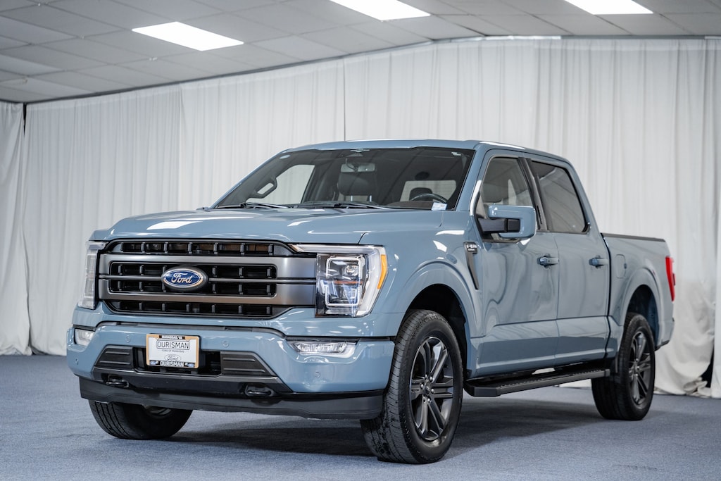 PANORAMIC ROOF / DUAL SUNROOFS / TWIN PANEL MOONROOF, POWER MOONROOF / SUNROOF / POWER TILT SLIDING ROOF, VOICE ACTIVATED NAVIGATION, NAVIGATION / GPS / NAV, FORD CO-PILOT360, BLIS / BLIND SPOT MONITORING / BLIND SIDE ALERT, DYNAMIC RADAR CRUISE CONTROL / ADAPTIVE CRUISE CONTROL / SMART CRUISE CONTROL, LANE DEPARTURE WARNING, LANE DEPARTURE ALERT / LANE KEEPING ALERT, REARVIEW CAMERA / BACK UP CAMERA / REVERSE CAMERA, REAR VIEW CAMERA WDYNAMIC GUIDELINES, ANDROID AUTO & APPLE CARPLAY, LEATHER SEATS, HEATED & COOLED FRONT ROW SEATS, HEATED FRONT ROW SEATS, HEATED SECOND ROW SEATS, POWER WINDOWS & LOCKS, FOUR WHEEL DRIVE / 4WD / 4X4, STEERING WHEEL AUDIO CONTROLS, CRUISE CONTROL, SYNC 4, WIRELESS CHARGING, REMOTE START, REAR CROSS TRAFFIC ALERT, PUSH-BUTTON START, POWER TAILGATE LOCK, POWER SLIDING REAR WINDOW, BLUETOOTH AUDIO STREAMING, HEATED STEERING WHEEL, ECO BOOST ENGINE, DUAL ZONE A/C CONTROLS, BLUETOOTH, BACK UP SENSORS, B&O SOUND SYSTEM, 36 GALLON TANK / 36 GAL TANK, 145" WHEELBASE, 2nd Row Heated Seats, 3.31 Axle Ratio, 4-Wheel Disc Brakes, 8 Speakers, ABS brakes, Accent-Color Angular Step Bars, Air Conditioning, AM/FM radio: SiriusXM with 360L, Auto High-beam Headlights, Automatic temperature control, Body-Color Front & Rear Bumpers, Box Side Decals, Brake assist, Chrome Single-Tip Exhaust, Class IV Trailer Hitch Receiver, Compass, Connected Built-In Navigation, Dark 2-Bar & 1 Minor Bar Style Grille, Delay-off headlights, Electronic Stability Control, Equipment Group 502A High, Evasive Steering Assist, Exterior Parking Camera Rear, Ford Co-Pilot360 Assist 2.0, Front Bucket Seats, Front Center Armrest, Front dual zone A/C, Front fog lights, Front reading lights, Fully automatic headlights, GVWR: 7,050 lbs Payload Package, Heated front seats, Heated steering wheel, Integrated Trailer Brake Controller, Intelligent Adaptive Cruise Control w/Stop & Go, Intersection Assist, Lariat Sport Appearance Package, Leather-Trimmed Bucket Seats, LED Projector w/Dynamic Bending Headlamps, Low tire pressure warning, Navigation System, Navigation system: Connected Navigation, Panic alarm, Power driver seat, Power passenger seat, Power steering, Power Tilt/Telescoping Steering Column w/Memory, Power windows, Pro Trailer Backup Assist & Pro Trailer Hitch Assist, Radio data system, Radio: B&O Sound System by Bang & Olufsen, Rain-Sensing Wipers, Rear reading lights, Rear window defroster, Remote keyless entry, Security system, Speed control, Speed Sign Recognition, Speed-sensing steering, Steering wheel mounted audio controls, SYNC 4 w/Enhanced Voice Recognition, Traction control, Trailer Tow Package, Twin Panel Moonroof, Variably intermittent wipers, Ventilated front seats, Wheels: 20" Chrome-Like PVD, Wireless Charging Pad. 2023 Ford F-150 Lariat Pano Roof Sport Pkg 4WD Area 51 Blue 3.5L V6 EcoBoost
