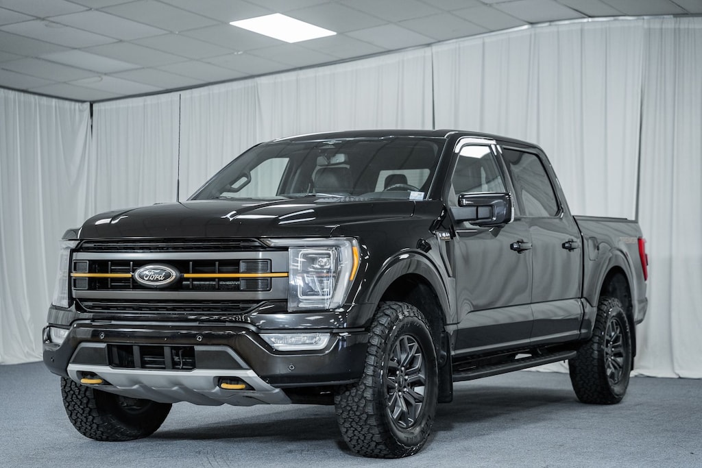 PANORAMIC ROOF / DUAL SUNROOFS / TWIN PANEL MOONROOF, POWER MOONROOF / SUNROOF / POWER TILT SLIDING ROOF, VOICE ACTIVATED NAVIGATION, NAVIGATION / GPS / NAV, FORD CO-PILOT360, DYNAMIC RADAR CRUISE CONTROL / ADAPTIVE CRUISE CONTROL / SMART CRUISE CONTROL, LANE DEPARTURE WARNING, LANE DEPARTURE ALERT / LANE KEEPING ALERT, REARVIEW CAMERA / BACK UP CAMERA / REVERSE CAMERA, REAR VIEW CAMERA WDYNAMIC GUIDELINES, ANDROID AUTO & APPLE CARPLAY, LEATHER SEATS, HEATED & COOLED FRONT ROW SEATS, HEATED FRONT ROW SEATS, HEATED SECOND ROW SEATS, POWER WINDOWS & LOCKS, FOUR WHEEL DRIVE / 4WD / 4X4, STEERING WHEEL AUDIO CONTROLS, CRUISE CONTROL, SYNC 4, WIRELESS CHARGING, REMOTE START, PUSH-BUTTON START, PREMIUM AUDIO W/INTEGRATED NAV & APP STE, POWER TAILGATE LOCK, POWER SLIDING REAR WINDOW, BLUETOOTH AUDIO STREAMING, HEATED STEERING WHEEL, ECO BOOST ENGINE, DUAL ZONE A/C CONTROLS, BLUETOOTH, BACK UP SENSORS, B&O SOUND SYSTEM, AUTO HIGH BEAMS, 360- DEGREE CAMERA, 145" WHEELBASE, 12" Productivity Screen in Instrument Cluster, 2nd Row Heated Seats, 360 Degree Camera, 4-Wheel Disc Brakes, ABS brakes, Advanced Security Pack, Air Conditioning, Auto High-beam Headlights, Automatic temperature control, Brake assist, Compass, Connected Built-In Navigation, Delay-off headlights, Electronic Locking w/3.73 Axle Ratio, Electronic Stability Control, Equipment Group 402A High, Evasive Steering Assist, Exterior Parking Camera Rear, Ford Co-Pilot360 Assist 2.0, Front Bucket Seats, Front Center Armrest, Front dual zone A/C, Front reading lights, Fully automatic headlights, GVWR: 7,000 lbs Payload Package, Heated front seats, Heated Steering Wheel, Intelligent Adaptive Cruise Control w/Stop & Go, Intersection Assist, LED Projector w/Dynamic Bending Headlamps, Low tire pressure warning, Navigation System, Navigation system: Connected Navigation, Panic alarm, Passenger door bin, Power driver seat, Power Glass Sideview Mirr w/Body-Color Skull Caps, Power passenger seat, Power steering, Power Tilt/Telescoping Steering Column w/Memory, Power windows, Power-Adjustable Pedals w/Memory, Power-Sliding Rear Window, Pro Trailer Backup Assist & Pro Trailer Hitch Assist, Radio: B&O Sound System by Bang & Olufsen, Rain-Sensing Wipers, Rear window defroster, Remote keyless entry, Speed control, Speed Sign Recognition, Speed-sensing steering, Split folding rear seat, Steering wheel mounted audio controls, Traction control, Twin Panel Moonroof, Unique Tremor Leather-Trimmed Bucket Seats, Universal Garage Door Opener, Variably intermittent wipers, Wireless Charging Pad. 2023 Ford F-150 Tremor 4WD Agate Black Metallic 3.5L V6 EcoBoost