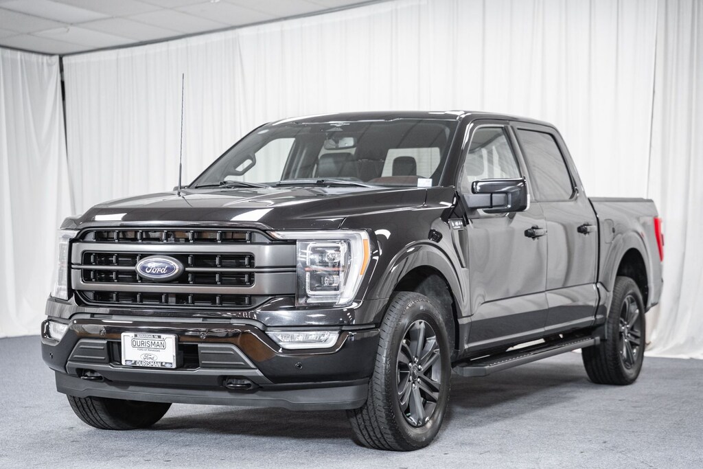PANORAMIC ROOF / DUAL SUNROOFS / TWIN PANEL MOONROOF, POWER MOONROOF / SUNROOF / POWER TILT SLIDING ROOF, VOICE ACTIVATED NAVIGATION, NAVIGATION / GPS / NAV, FORD CO-PILOT360, BLIS / BLIND SPOT MONITORING / BLIND SIDE ALERT, DYNAMIC RADAR CRUISE CONTROL / ADAPTIVE CRUISE CONTROL / SMART CRUISE CONTROL, LANE DEPARTURE WARNING, LANE DEPARTURE ALERT / LANE KEEPING ALERT, REARVIEW CAMERA / BACK UP CAMERA / REVERSE CAMERA, REAR VIEW CAMERA WDYNAMIC GUIDELINES, ANDROID AUTO & APPLE CARPLAY, LEATHER SEATS, HEATED & COOLED FRONT ROW SEATS, HEATED FRONT ROW SEATS, HEATED SECOND ROW SEATS, POWER WINDOWS & LOCKS, FOUR WHEEL DRIVE / 4WD / 4X4, STEERING WHEEL AUDIO CONTROLS, CRUISE CONTROL, SYNC 4, WIRELESS CHARGING, REMOTE START, REAR CROSS TRAFFIC ALERT, PUSH-BUTTON START, PREMIUM AUDIO W/INTEGRATED NAV & APP STE, PREMIUM AUDIO SOUND SYSTEM, POWER TAILGATE LOCK, POWER SLIDING REAR WINDOW, BLUETOOTH AUDIO STREAMING, BLUETOOTH & BLUETOOTH STREAMING, BLUETOOTH HANDS-FREE PHONE SYSTEM, ONE OWNER, HEATED STEERING WHEEL, ECO BOOST ENGINE, DUAL ZONE A/C CONTROLS, BLUETOOTH, BACK UP SENSORS, B&O SOUND SYSTEM, AUTO HIGH BEAMS, 36 GALLON TANK / 36 GAL TANK, 145" WHEELBASE, 2nd Row Heated Seats, 3.31 Axle Ratio, 4-Wheel Disc Brakes, 8 Speakers, ABS brakes, Accent-Color Angular Step Bars, Air Conditioning, Alloy wheels, AM/FM radio: SiriusXM with 360L, Auto High-beam Headlights, Auto-dimming door mirrors, Automatic temperature control, Body-Color Front & Rear Bumpers, Box Side Decals, Brake assist, Chrome Single-Tip Exhaust, Class IV Trailer Hitch Receiver, Compass, Connected Built-In Navigation, Dark 2-Bar & 1 Minor Bar Style Grille, Delay-off headlights, Electronic Stability Control, Equipment Group 502A High, Evasive Steering Assist, Exterior Parking Camera Rear, Ford Co-Pilot360 Assist 2.0, Front Bucket Seats, Front Center Armrest, Front dual zone A/C, Front fog lights, Front reading lights, Fully automatic headlights, Garage door transmitter, Heated front seats, Heated steering wheel, Illuminated entry, Integrated Trailer Brake Controller, Intelligent Adaptive Cruise Control w/Stop & Go, Intersection Assist, Lariat Sport Appearance Package, Leather-Trimmed Bucket Seats, LED Projector w/Dynamic Bending Headlamps, Low tire pressure warning, Navigation System, Panic alarm, Passenger door bin, Power driver seat, Power passenger seat, Power steering, Power Tilt/Telescoping Steering Column w/Memory, Power windows, Pro Trailer Backup Assist & Pro Trailer Hitch Assist, Radio data system, Radio: B&O Sound System by Bang & Olufsen, Rain-Sensing Wipers, Rear reading lights, Rear seat center armrest, Rear step bumper, Rear window defroster, Remote keyless entry, Security system, Speed control, Speed Sign Recognition, Speed-sensing steering, Split folding rear seat, Steering wheel mounted audio controls, SYNC 4 w/Enhanced Voice Recognition, Tilt steering wheel, Traction control, Trailer Tow Package, Trip computer, Twin Panel Moonroof, Variably intermittent wipers, Ventilated front seats, Voltmeter, Wheels: 20" 6-Spoke Dark Alloy Painted Aluminum, Wireless Charging Pad. 2023 Ford F-150 Lariat 4WD Agate Black Metallic 3.5L V6 EcoBoost