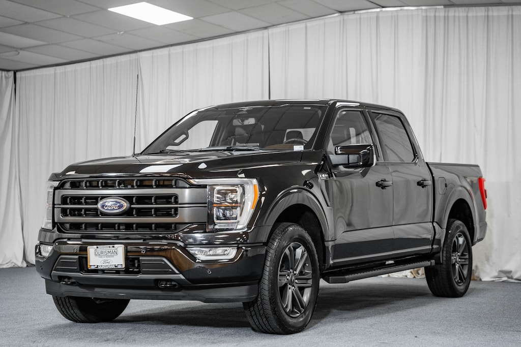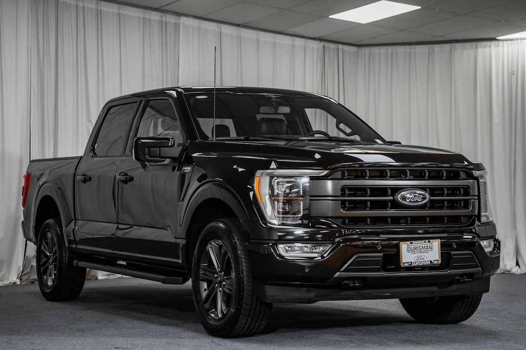 PANORAMIC ROOF / DUAL SUNROOFS / TWIN PANEL MOONROOF, POWER MOONROOF / SUNROOF / POWER TILT SLIDING ROOF, VOICE ACTIVATED NAVIGATION, NAVIGATION / GPS / NAV, FORD CO-PILOT360, BLIS / BLIND SPOT MONITORING / BLIND SIDE ALERT, DYNAMIC RADAR CRUISE CONTROL / ADAPTIVE CRUISE CONTROL / SMART CRUISE CONTROL, LANE DEPARTURE WARNING, LANE DEPARTURE ALERT / LANE KEEPING ALERT, REARVIEW CAMERA / BACK UP CAMERA / REVERSE CAMERA, REAR VIEW CAMERA WDYNAMIC GUIDELINES, ANDROID AUTO & APPLE CARPLAY, LEATHER SEATS, HEATED & COOLED FRONT ROW SEATS, HEATED FRONT ROW SEATS, HEATED SECOND ROW SEATS, POWER WINDOWS & LOCKS, FOUR WHEEL DRIVE / 4WD / 4X4, STEERING WHEEL AUDIO CONTROLS, CRUISE CONTROL, SYNC 4, WIRELESS CHARGING, REMOTE START, REAR CROSS TRAFFIC ALERT, PUSH-BUTTON START, POWER TAILGATE LOCK, POWER SLIDING REAR WINDOW, BLUETOOTH AUDIO STREAMING, HEATED STEERING WHEEL, ECO BOOST ENGINE, DUAL ZONE A/C CONTROLS, BLUETOOTH, BACK UP SENSORS, B&O SOUND SYSTEM, AUTO HIGH BEAMS, 36 GALLON TANK / 36 GAL TANK, 145" WHEELBASE, 4WD, 2nd Row Heated Seats, 4-Wheel Disc Brakes, 8 Speakers, ABS brakes, Accent-Color Angular Step Bars, Air Conditioning, Alloy wheels, AM/FM radio: SiriusXM with 360L, Auto High-beam Headlights, Automatic temperature control, Body-Color Front & Rear Bumpers, Box Side Decals, Brake assist, Chrome Single-Tip Exhaust, Chrome wheels, Class IV Trailer Hitch Receiver, Compass, Connected Built-In Navigation, Dark 2-Bar & 1 Minor Bar Style Grille, Electronic Locking w/3.55 Axle Ratio, Electronic Stability Control, Equipment Group 502A High, Evasive Steering Assist, Exterior Parking Camera Rear, Ford Co-Pilot360 Assist 2.0, Front Bucket Seats, Front Center Armrest, Front dual zone A/C, Front fog lights, Front reading lights, Fully automatic headlights, GVWR: 6,600 lbs Payload Package, Heated front seats, Heated steering wheel, Integrated Trailer Brake Controller, Intelligent Adaptive Cruise Control w/Stop & Go, Intersection Assist, Lariat Sport Appearance Package, LED Projector w/Dynamic Bending Headlamps, Low tire pressure warning, Navigation System, Navigation system: Connected Navigation, Panic alarm, Passenger door bin, Power driver seat, Power passenger seat, Power steering, Power Tilt/Telescoping Steering Column w/Memory, Power windows, Pro Trailer Backup Assist & Pro Trailer Hitch Assist, Radio data system, Radio: B&O Sound System by Bang & Olufsen, Rain-Sensing Wipers, Rear window defroster, Remote keyless entry, Security system, Speed control, Speed Sign Recognition, Speed-sensing steering, Split folding rear seat, Steering wheel mounted audio controls, SYNC 4 w/Enhanced Voice Recognition, Traction control, Trailer Tow Package, Twin Panel Moonroof, Variably intermittent wipers, Ventilated front seats, Wheels: 20" Chrome-Like PVD, Wireless Charging Pad. 2023 Ford F-150 Lariat 4WD Agate Black Metallic 2.7L V6 EcoBoost