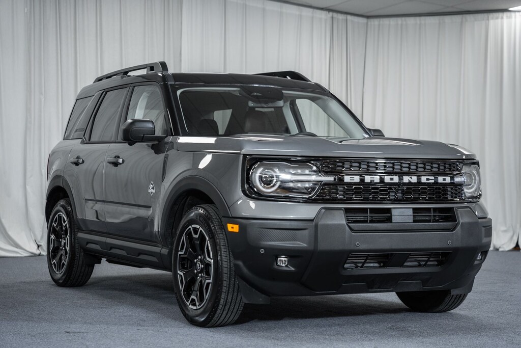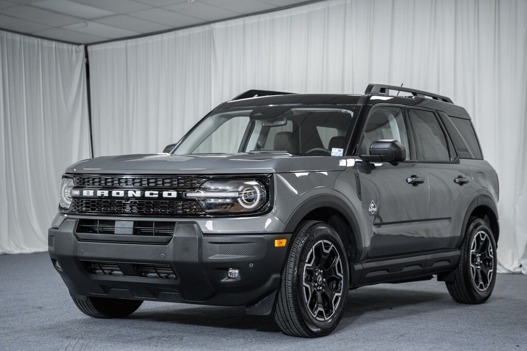 POWER MOONROOF / SUNROOF / POWER TILT SLIDING ROOF, REARVIEW CAMERA / BACK UP CAMERA / REVERSE CAMERA, REAR VIEW CAMERA WDYNAMIC GUIDELINES, ANDROID AUTO & APPLE CARPLAY, POWER WINDOWS & LOCKS, FOUR WHEEL DRIVE / 4WD / 4X4, STEERING WHEEL AUDIO CONTROLS, CRUISE CONTROL, SYNC 4, REMOTE START, PUSH-BUTTON START, BLUETOOTH AUDIO STREAMING, ONE OWNER, ECO BOOST ENGINE, BACK UP SENSORS, AUTO HIGH BEAMS, 4-Wheel Disc Brakes, 6 Speakers, ABS brakes, Air Conditioning, Auto High-beam Headlights, Automatic temperature control, B&O Sound System by Bang & Olufsen, Brake assist, Connected Navigation, Equipment Group 300A, Four wheel independent suspension, Front Bucket Seats, Front Center Armrest, Front Driver/Passenger Seat Back Map Pockets, Front dual zone A/C, Front fog lights, Front Parking Sensors, Front reading lights, Fully automatic headlights, HD Radio, Heated front seats, Low tire pressure warning, Outer Banks Tech Package+, Panic alarm, Power driver seat, Power Moonroof, Power steering, Power windows, Rain sensing wipers, Rear Parking Sensors, Rear window defroster, Rear window wiper, Remote keyless entry, Security system, Speed control, Speed-Sensitive Wipers, Steering wheel mounted audio controls, Traction control, Variably intermittent wipers. 2025 Ford Bronco Sport Outer Banks Moonroof Tech Pkg 4WD Carbonized Gray Metallic 1.5L EcoBoost