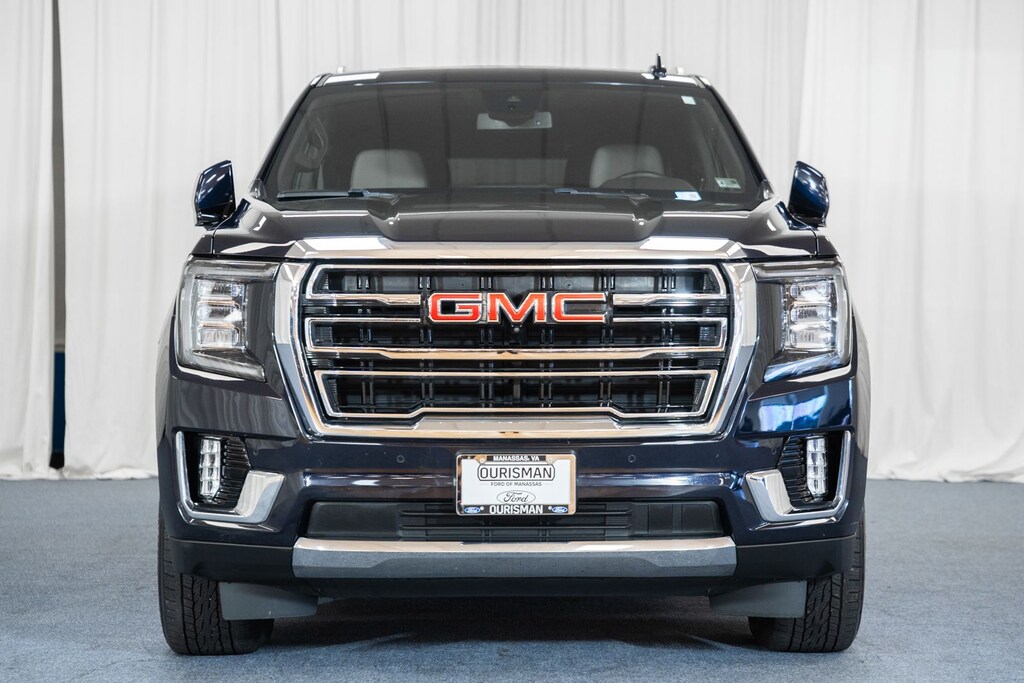 PANORAMIC ROOF / DUAL SUNROOFS / TWIN PANEL MOONROOF, POWER MOONROOF / SUNROOF / POWER TILT SLIDING ROOF, BLIS / BLIND SPOT MONITORING / BLIND SIDE ALERT, DYNAMIC RADAR CRUISE CONTROL / ADAPTIVE CRUISE CONTROL / SMART CRUISE CONTROL, LANE DEPARTURE WARNING, LANE DEPARTURE ALERT / LANE KEEPING ALERT, REARVIEW CAMERA / BACK UP CAMERA / REVERSE CAMERA, REAR VIEW CAMERA WDYNAMIC GUIDELINES, ANDROID AUTO & APPLE CARPLAY, LEATHER SEATS, HEATED & COOLED FRONT ROW SEATS, HEATED FRONT ROW SEATS, HEATED SECOND ROW SEATS, POWER WINDOWS & LOCKS, FOUR WHEEL DRIVE / 4WD / 4X4, STEERING WHEEL AUDIO CONTROLS, CRUISE CONTROL, WIRELESS CHARGING, REMOTE START, REAR CROSS TRAFFIC ALERT, PUSH-BUTTON START, PREMIUM AUDIO SOUND SYSTEM, BLUETOOTH AUDIO STREAMING, HEATED STEERING WHEEL, DUAL ZONE A/C CONTROLS, BLUETOOTH, BACK UP SENSORS, AUTO HIGH BEAMS, 4WD, 2 Presets For Outside Rearview Mirrors, 2 Presets For Power Driver Seat, 20" x 9" Polished Aluminum Wheels, 3.23 Rear Axle Ratio, 3rd Row 60/40 Power-Folding Split-Bench Seat, 4-Wheel Disc Brakes, 9 Speakers, ABS brakes, Adaptive Cruise Control, Air Conditioning, Alloy wheels, AM/FM radio: SiriusXM with 360L, AM/FM Stereo, Apple CarPlay/Android Auto, Automatic temperature control, Bose 9-Speaker Stereo Audio System Feature, Brake assist, Bright Chrome Bodyside Moldings, Bright Front & Rear Door Sill Plates, Bumpers: body-color, Chrome Door Handles w/Body-Color Strip, Compass, Dual-Pane Panoramic Power Sunroof, Electronic Stability Control, Enhanced Automatic Emergency Braking, Four wheel independent suspension, Front & Rear Park Assist, Front Bucket Seats, Front Center Armrest, Front dual zone A/C, Front fog lights, Front reading lights, Fully automatic headlights, Hands-Free Power Programmable Rear Liftgate, HD Surround Vision, Heated & Ventilated Driver & Front Passenger Seats, Heated 2nd Row Outboard Position Seats, Heated Driver & Front Passenger Seats, Heated front seats, Heated Steering Wheel, Inside Rear-View Auto-Dimming Mirror, IntelliBeam Automatic High Beam On/Off, Lane Change Alert w/Side Blind Zone Alert, Lane Keep Assist w/Lane Departure Warning, Low tire pressure warning, Navigation System, Outside Heated Power-Adjustable Mirrors, Panic alarm, Power driver seat, Power Liftgate, Power passenger seat, Power Release 2nd Row 60/40 Split-Folding Bench Seat, Power steering, Power Tilt & Telescopic Steering Column, Power windows, Preferred Equipment Group 4SA, Premium Smooth Ride Suspension, Rain sensing wipers, Rear air conditioning, Rear Pedestrian Alert, Rear window defroster, Rear window wiper, Remote keyless entry, Safety Alert Seat, Security system, SiriusXM w/360L, SLT Luxury Package, SLT Premium Package, Speed control, Speed-sensing steering, Split folding rear seat, Spoiler, Steering wheel mounted audio controls, Traction control, Universal Home Remote, Variably intermittent wipers, Ventilated front seats, Wireless Charging. 2023 GMC Yukon XL SLT 4WD Midnight Blue Metallic EcoTec3 5.3L V8