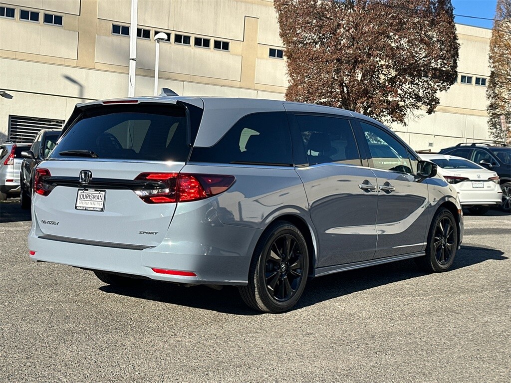 HONDA CERTIFIED / CERTIFIED PRE OWNED / CPO, ONE OWNER, CLEAN CARFAX, FACTORY WARRANTY, HONDA SENSING, LIKE NEW, DEALER WARRANTY INCLUDED!, 3.61 Axle Ratio, 3rd row seats: split-bench, 4-Wheel Disc Brakes, 7 Speakers, A/V remote: CabinControl, ABS brakes, Adaptive Cruise Control: Adaptive Cruise Control (ACC) with Low-Speed Follow, Air Conditioning, Alloy wheels, AM/FM radio: SiriusXM, Anti-whiplash front head restraints, Apple CarPlay/Android Auto, Auto High-beam Headlights, Auto-dimming Rear-View mirror, Automatic temperature control, Blind Spot Information (BSI) System warning, Brake assist, Bumpers: body-color, Delay-off headlights, Driver door bin, Driver vanity mirror, Driver's Seat Mounted Armrest, Dual front impact airbags, Dual front side impact airbags, Electronic Stability Control, Exterior Parking Camera Rear, Four wheel independent suspension, Front anti-roll bar, Front Bucket Seats, Front dual zone A/C, Front fog lights, Front reading lights, Fully automatic headlights, Garage door transmitter: HomeLink, Heated door mirrors, Heated Front Bucket Seats, Heated front seats, Illuminated entry, Knee airbag, Lane departure: Lane Keeping Assist System (LKAS) active, Leather Seat Trim, Leather steering wheel, Low tire pressure warning, Memory seat, Occupant sensing airbag, Outside temperature display, Overhead airbag, Overhead console, Panic alarm, Passenger door bin, Passenger seat mounted armrest, Passenger vanity mirror, Power door mirrors, Power driver seat, Power Liftgate, Power moonroof, Power passenger seat, Power steering, Power windows, Radio data system, Radio: 160-Watt AM/FM/HD/SiriusXM Audio System, Rear air conditioning, Rear anti-roll bar, Rear reading lights, Rear seat center armrest, Rear window defroster, Rear window wiper, Reclining 3rd row seat, Remote keyless entry, Security system, Speed control, Speed-sensing steering, Speed-Sensitive Wipers, Split folding rear seat, Spoiler, Steering wheel mounted audio controls, Tachometer, Telescoping steering wheel, Tilt steering wheel, Traction control, Trip computer, Turn signal indicator mirrors, Variably intermittent wipers, Wheels: 19" Gloss Black Alloy. 2023 Honda Odyssey Sport FWD Sonic Gray Pearl 3.5L V6 SOHC i-VTEC 24V