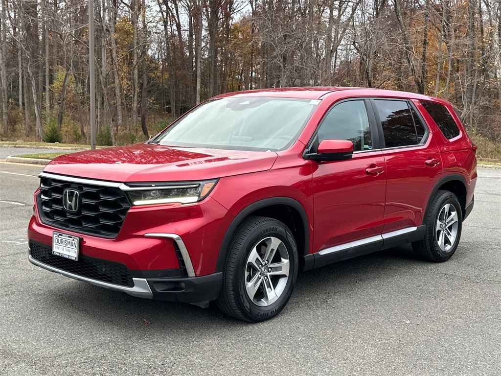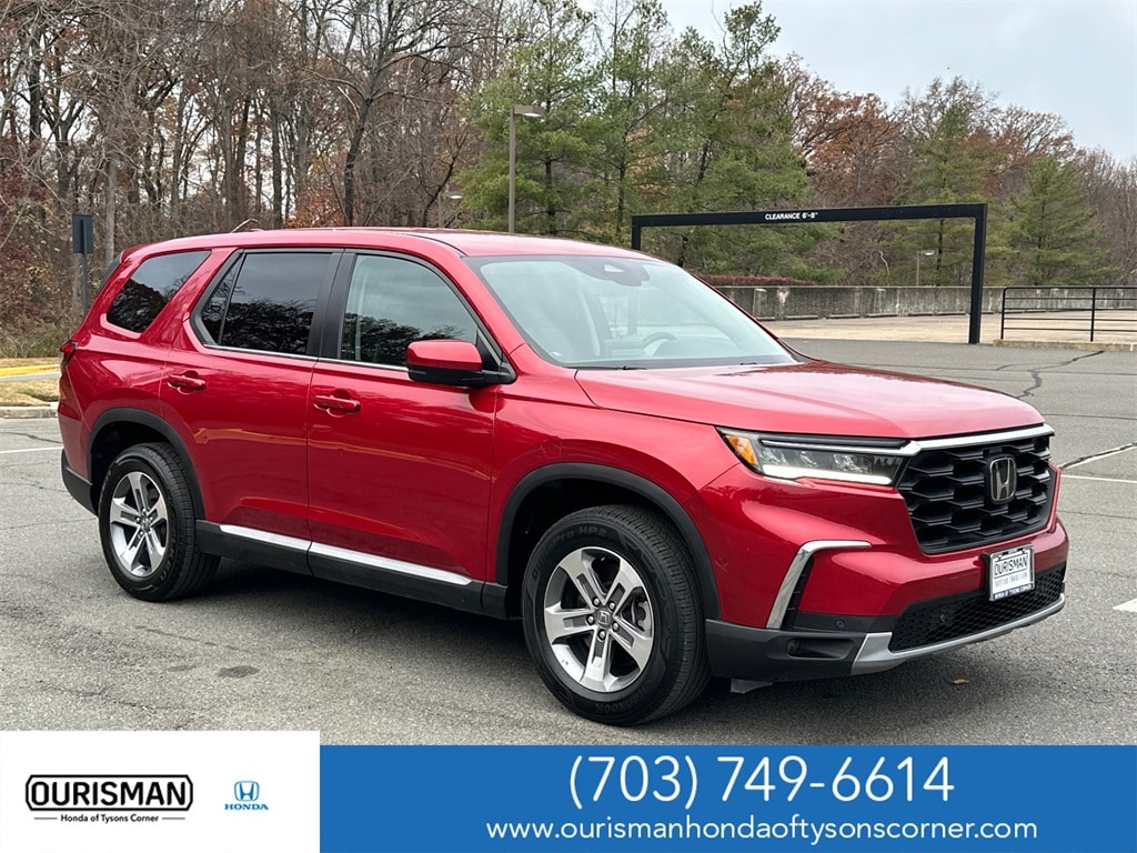 ONE OWNER, CLEAN CARFAX, FACTORY WARRANTY, BACKUP CAMERA / REAR VIEW CAMERA / REVERSE CAMERA, BLIND SPOT MONITOR / BLIND SPOT INFORMATION SYSTEM / BSM / BSIM, REAR CROSS TRAFFIC ALERT / CROSS TRAFFIC MONITOR / RCTA, AUTOMATIC HEADLIGHTS, APPLE CARPLAY / ANDROID AUTO, BLUETOOTH / BLUETOOTH AUDIO STREAMING, AUTOMATIC CLIMATE CONTROL, DUAL ZONE CLIMATE CONTROL, KEYLESS ENTRY / SMART KEY, PUSH TO START / PUSH BUTTON START / START BUTTON, LEATHER SEATS, HEATED SEATS, LIKE NEW, DEALER WARRANTY INCLUDED!, 3rd row seats: split-bench, 4-Wheel Disc Brakes, 9 Speakers, ABS brakes, Adaptive Cruise Control: Adaptive Cruise Control (ACC) with Low-Speed Follow, Air Conditioning, Alloy wheels, AM/FM radio: SiriusXM, Apple CarPlay/Android Auto, Auto High-beam Headlights, Auto-dimming Rear-View mirror, Automatic temperature control, Axle Ratio: 4.167, Blind Spot Information (BSI) System warning, Brake assist, Bumpers: body-color, Delay-off headlights, Driver door bin, Driver vanity mirror, Dual front impact airbags, Dual front side impact airbags, Electronic Stability Control, Emergency communication system: HondaLink Assist, Exterior Parking Camera Rear, Four wheel independent suspension, Front anti-roll bar, Front Bucket Seats, Front Center Armrest, Front dual zone A/C, Front fog lights, Front reading lights, Fully automatic headlights, Garage door transmitter: HomeLink, Heated door mirrors, Heated Front Bucket Seats, Heated front seats, Illuminated entry, Knee airbag, Lane departure: Lane Keeping Assist System (LKAS) active, Leather Seat Trim, Low tire pressure warning, Memory seat, Occupant sensing airbag, Outside temperature display, Overhead airbag, Overhead console, Panic alarm, Passenger door bin, Passenger vanity mirror, Power door mirrors, Power driver seat, Power Liftgate, Power passenger seat, Power steering, Power windows, Radio data system, Radio: 245-Watt Audio System, Rear air conditioning, Rear anti-roll bar, Rear reading lights, Rear window defroster, Rear window wiper, Reclining 3rd row seat, Remote keyless entry, Security system, Speed control, Speed-sensing steering, Speed-Sensitive Wipers, Split folding rear seat, Spoiler, Steering wheel mounted audio controls, Tachometer, Telescoping steering wheel, Tilt steering wheel, Traction control, Trip computer, Turn signal indicator mirrors, Variably intermittent wipers, Wheels: 18" Pewter Gray Machined Face. 2024 Honda Pilot EX-L 7 Passenger FWD Radiant Red Metallic II 3.5L V6 DOHC 24V