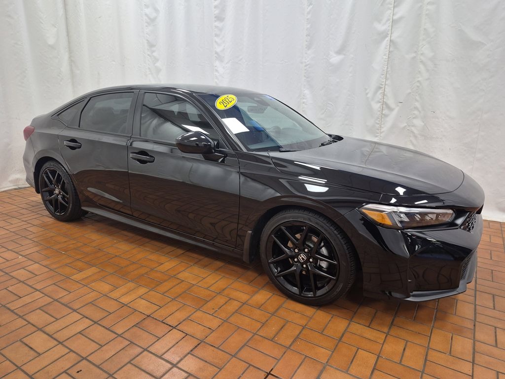 2025 Honda Civic Sport Crystal Black Pearl FWD ONE OWNER, BACKUP CAMERA / REAR VIEW CAMERA / REVERSE CAMERA, ADAPTIVE CRUISE CONTROL / ACC / DYNAMIC RADAR CRUISE CONTROL, LANE KEEP ASSIST / LANE KEEPING ASSIST SYSTEM / LKAS, LANE DEPARTURE WARNING / ROAD DEPARTURE MITIGATION SYSTEM / RDM, BLIND SPOT MONITOR / BLIND SPOT INFORMATION SYSTEM / BSM / BSIM, APPLE CARPLAY / ANDROID AUTO, BLUETOOTH / BLUETOOTH AUDIO STREAMING, KEYLESS ENTRY / SMART KEY, PUSH TO START / PUSH BUTTON START / START BUTTON, Black w/Cloth/Leatherette Seating Surfaces. CARFAX One-Owner. 31/39 City/Highway MPG 2.0L I4 DOHC 16V