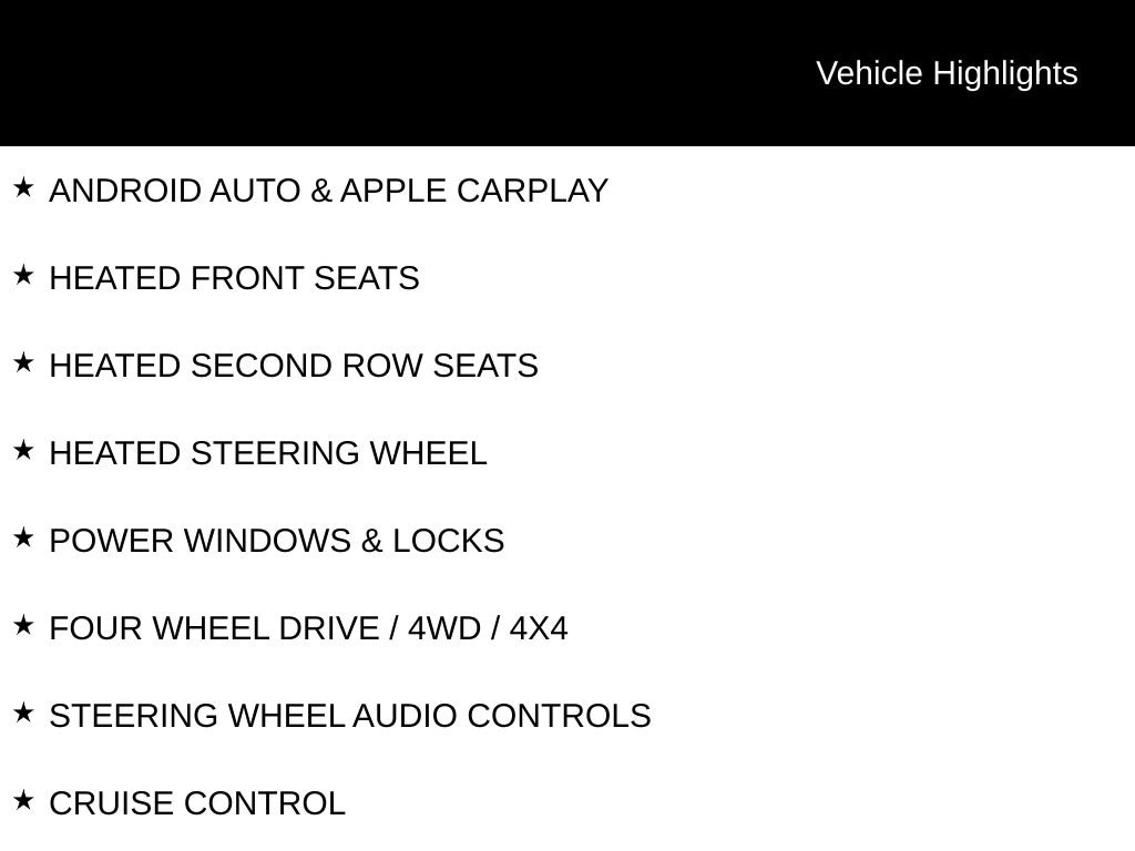 2022 Ram 1500 Big Horn/Lone Star ANDROID AUTO & APPLE CARPLAY, HEATED FRONT SEATS, HEATED SECOND ROW SEATS, HEATED STEERING WHEEL, POWER WINDOWS & LOCKS, FOUR WHEEL DRIVE / 4WD / 4X4, STEERING WHEEL AUDIO CONTROLS, CRUISE CONTROL, PUSH-BUTTON START, REMOTE START, BLUETOOTH, 115V Auxiliary Power Outlet, 115V Auxiliary Rear Power Outlet, 2nd Row In Floor Storage Bins, 3 Rear Seat Head Restraints, 4 Way Front Headrests, 4-Wheel Disc Brakes, 400W Inverter, 48V Belt Starter Generator, 4G LTE Wi-Fi Hot Spot, 6 Speakers, 8.4" Touchscreen Display, Air Conditioning, Air Conditioning ATC w/Dual Zone Control, AM/FM radio, Anti-Spin Differential Rear Axle, Apple CarPlay, Auto-Dimming Exterior Driver Mirror, Auto-Dimming Rear-View Mirror, Bed Utility Group, Big Horn Badge, Big Horn Level 2 Equipment Group, Black Exterior Mirrors, Black Exterior Truck Badging, Black Headlamp Bezels, Black Interior Accents, Black Premium Power Mirrors, Bluetooth Handsfree Phone & Audio, Body Color Front Bumper, Body Color Rear Bumper w/Step Pads, Brake assist, Bucket Seats, Class IV Receiver Hitch, Cluster 7.0" TFT Color Display, Compass, Connectivity - US/Canada, Convex Wide-Angle Mirror Insert, Delete LED Lamp - Floor Console Bin, Deluxe Cloth Bucket Seats, Driver door bin, Dual Exhaust w/Black Tips, Exterior Mirrors Courtesy Lamps, Exterior Mirrors w/Heating Element, Exterior Mirrors w/Supplemental Signals, For Details, Visit DriveUconnect.com, Front Center Armrest w/Storage, Front reading lights, Front Seat Back Map Pockets, Full Length Floor Console, Fully automatic headlights, Global Telematics Box Module (TBM), Glove Box Lamp, Google Android Auto, GPS Antenna Input, Heated Front Seats, Heated Steering Wheel, Integrated Center Stack Radio, Low tire pressure warning, Manual Adjust 4-Way Front Passenger Seat, Media Hub w/2 Charge Only USBs, MOPAR 4 Adjustable Cargo Tie-Down Hooks, MOPAR Deployable Bed Step, MOPAR Spray In Bedliner, Night Edition (DISC), Panic alarm, ParkSense Front/Rear Park Assist w/Stop, ParkView Rear Back-Up Camera, Pick-Up Box Lighting, Power 2-Way Driver Lumbar Adjust, Power 8-Way Driver Seat, Power Adjustable Pedals, Power door mirrors, Power steering, Power windows, Power-Folding Mirrors, Quick Order Package 25Z Big Horn, Radio: Uconnect 5 W w/8.4" Display, Rear 60/40 Folding Seat, Rear Center Armrest, Rear Dome w/On/Off Switch Lamp, Rear Power Sliding Window, Rear step bumper, Rear Wheelhouse Liners, Rear Window Defroster, Remote Start System, Security Alarm, SiriusXM Radio Service, SiriusXM Satellite Radio, Speed control, Sun Visors w/Illuminated Vanity Mirrors, Traction control, Universal Garage Door Opener, USB Host Flip, Wheels: 20" x 9.0" Premium Paint/Polished (DISC).