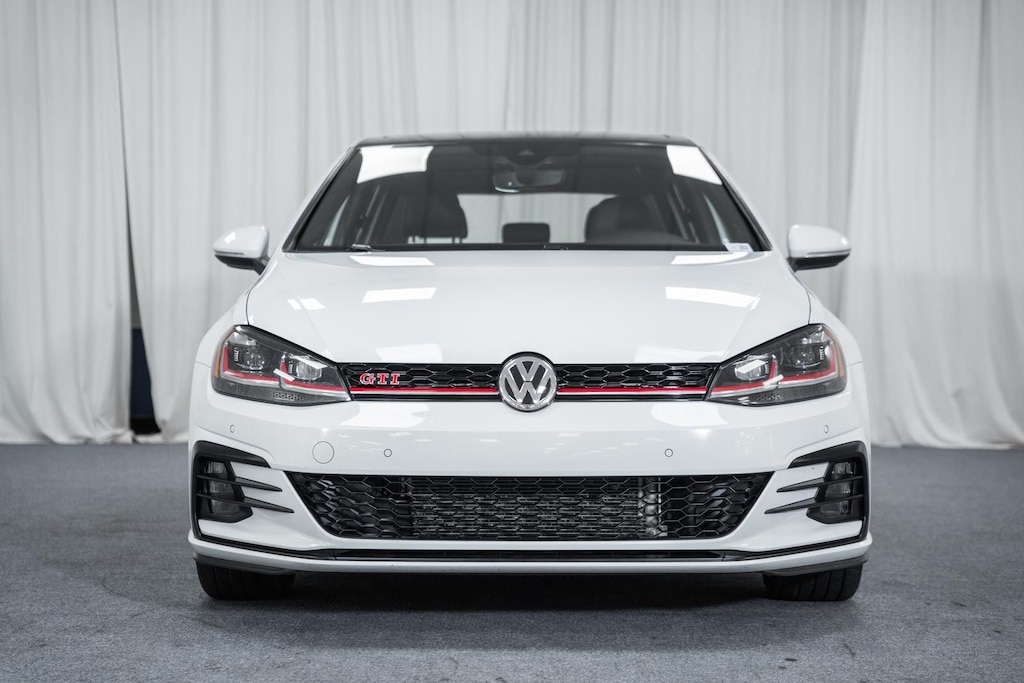 PANORAMIC ROOF / DUAL SUNROOFS / TWIN PANEL MOONROOF, POWER MOONROOF / SUNROOF / POWER TILT SLIDING ROOF, VOICE ACTIVATED NAVIGATION, NAVIGATION / GPS / NAV, BLIS / BLIND SPOT MONITORING / BLIND SIDE ALERT, DYNAMIC RADAR CRUISE CONTROL / ADAPTIVE CRUISE CONTROL / SMART CRUISE CONTROL, LANE DEPARTURE WARNING, LANE DEPARTURE ALERT / LANE KEEPING ALERT, REARVIEW CAMERA / BACK UP CAMERA / REVERSE CAMERA, REAR VIEW CAMERA WDYNAMIC GUIDELINES, ANDROID AUTO & APPLE CARPLAY, LEATHER SEATS, HEATED FRONT ROW SEATS, POWER WINDOWS & LOCKS, STEERING WHEEL AUDIO CONTROLS, CRUISE CONTROL, REAR CROSS TRAFFIC ALERT, PUSH-BUTTON START, BLUETOOTH AUDIO STREAMING, BLUETOOTH & BLUETOOTH STREAMING, BLUETOOTH HANDS-FREE PHONE SYSTEM, DUAL ZONE A/C CONTROLS, BLUETOOTH, BACK UP SENSORS, AUTO HIGH BEAMS, 4-Wheel Disc Brakes, 9 Speakers, ABS brakes, Adaptive suspension, Air Conditioning, Alloy wheels, AM/FM radio: SiriusXM, Auto High-beam Headlights, Auto-dimming Rear-View mirror, Automatic temperature control, Brake assist, Bumpers: body-color, CD player, Compass, Delay-off headlights, Exterior Parking Camera Rear, Fender Premium Audio System w/Subwoofer, Four wheel independent suspension, Front Bucket Seats, Front Center Armrest, Front dual zone A/C, Front fog lights, Front reading lights, Fully automatic headlights, Heated door mirrors, Heated front seats, Heated Front Top Sport Seats, Illuminated entry, Lane Departure Warning System, Leather Seating Surfaces, Low tire pressure warning, Luggage Net, Navigation System, Panic alarm, Passenger door bin, Power door mirrors, Power driver seat, Power moonroof, Power passenger seat, Power steering, Power windows, Radio data system, Radio: Discover Media w/8" Touchscreen Navigation, Rain sensing wipers, Rear reading lights, Rear seat center armrest, Rear window defroster, Rear window wiper, Remote keyless entry, Speed control, Speed-sensing steering, Speed-Sensitive Wipers, Split folding rear seat, Spoiler, Sport steering wheel, Steering wheel mounted audio controls, Tilt steering wheel, Traction control, Trip computer, Turn signal indicator mirrors, Variably intermittent wipers, Wheels: 18" 5-Spoke 2-Tone Machined Alloy. 2019 Volkswagen Golf GTI Autobahn FWD Pure White 2.0L TSI DOHC