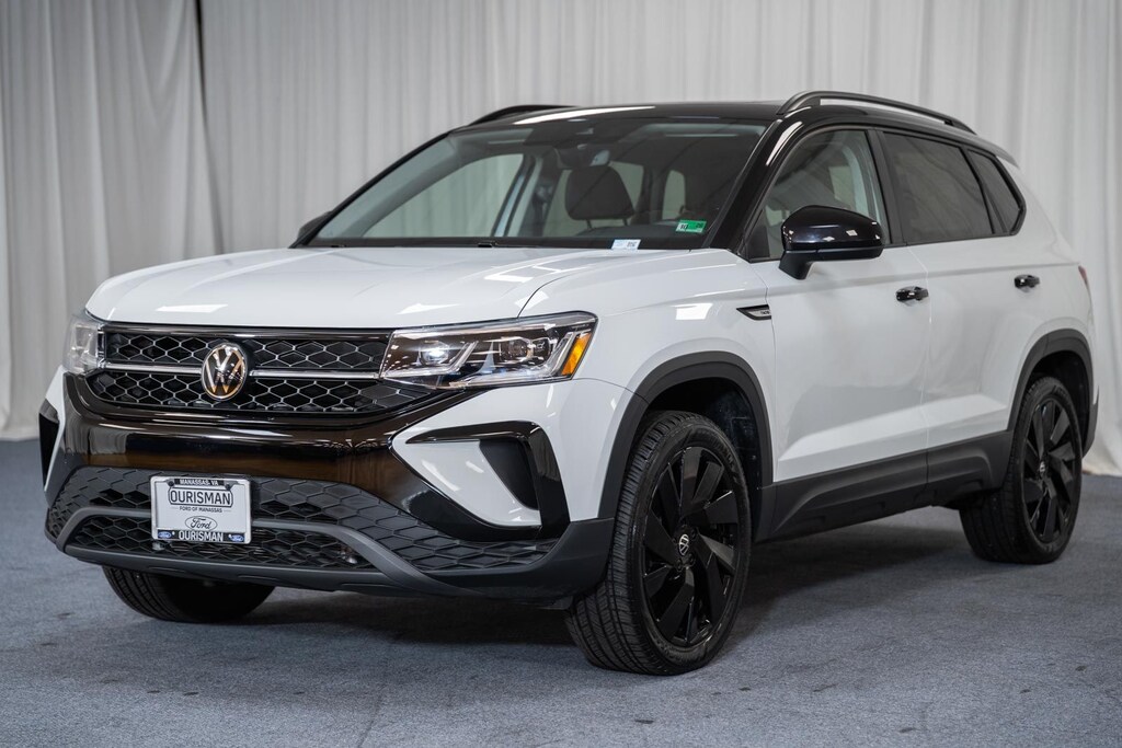 Prices on vehicles include freight and destination charges (applies to new vehicles only) , as well as a $999 Dealer Processing Fee. BLIS / BLIND SPOT MONITORING / BLIND SIDE ALERT, DYNAMIC RADAR CRUISE CONTROL / ADAPTIVE CRUISE CONTROL / SMART CRUISE CONTROL, LANE DEPARTURE WARNING, LANE DEPARTURE ALERT / LANE KEEPING ALERT, REARVIEW CAMERA / BACK UP CAMERA / REVERSE CAMERA, REAR VIEW CAMERA WDYNAMIC GUIDELINES, ANDROID AUTO & APPLE CARPLAY, HEATED FRONT ROW SEATS, POWER WINDOWS & LOCKS, ALL WHEEL DRIVE / AWD, STEERING WHEEL AUDIO CONTROLS, CRUISE CONTROL, WIRELESS CHARGING, REMOTE START, REAR CROSS TRAFFIC ALERT, PUSH-BUTTON START, BLUETOOTH AUDIO STREAMING, BLUETOOTH & BLUETOOTH STREAMING, BLUETOOTH HANDS-FREE PHONE SYSTEM, ONE OWNER, HEATED STEERING WHEEL, DUAL ZONE A/C CONTROLS, BLUETOOTH, AUTO HIGH BEAMS, 4-Wheel Disc Brakes, 5.20 Axle Ratio, 6 Speakers, ABS brakes, Active Blind Spot Monitor, Air Conditioning, Alloy wheels, Auto High-beam Headlights, Automatic temperature control, Brake assist, Bumpers: body-color, CloudTex & Cloth Seating Surfaces, Compass, Delay-off headlights, Dual front impact airbags, Dual front side impact airbags, Electronic Stability Control, Emergency communication system: VW Car-Net Safe & Secure 5-year, Exterior Parking Camera Rear, Four wheel independent suspension, Front anti-roll bar, Front Bucket Seats, Front Center Armrest, Front dual zone A/C, Front reading lights, Fully automatic headlights, Heated Front Bucket Seats, Heated front seats, Heated steering wheel, Illuminated entry, Leather Shift Knob, Low tire pressure warning, Occupant sensing airbag, Overhead airbag, Panic alarm, Passenger door bin, Power driver seat, Power moonroof, Power steering, Power windows, Radio data system, Radio: MIB3 Composition Media AM/FM/HD, Rain sensing wipers, Rear anti-roll bar, Rear seat center armrest, Rear window defroster, Rear window wiper, Remote keyless entry, Security system, Speed control, Speed-sensing steering, Split folding rear seat, Spoiler, Steering wheel mounted audio controls, Traction control, Trip computer, Variably intermittent wipers, Wheels: 19" Black Painted Alloy. 2024 Volkswagen Taos 1.5T SE Black AWD Pure White w/Deep Black Roof 1.5L I4 Turbocharged DOHC 16V LEV3-SULEV30 158hp