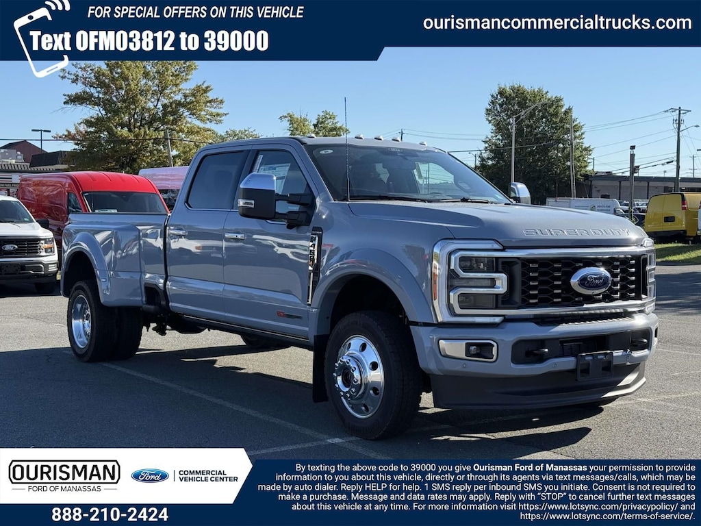 F-450 Platinum Plus Crew Cab 4x4, 6.7 Liter High Output V8 Diesel Engine, Smoked Truffle Leather Seats, Twin Panel Moonroof, FX4 Off Road Package, 14,000 GVWR, Snow Plow Prep, Glacier Grey.