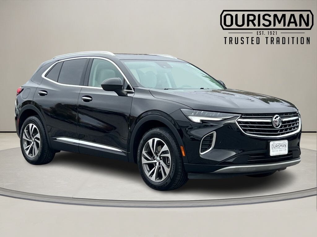 2022 Buick Envision Essence Ebony Twilight Metallic Maryland State Inspected with over 120 point inspection performed by a trained technician., 7-Speaker Audio System Feature w/Amplifier, 8-Way Power Driver Seat Adjuster, All-Weather Floor Mats (LPO) (DISC), Apple CarPlay/Android Auto, Auto High-beam Headlights, Brake assist, Driver 4-Way Power Lumbar Seat Adjuster, Emergency communication system: OnStar and Buick connected services capable, Four wheel independent suspension, Front Bin Center Console USB Ports, Front Passenger 4-Way Power Lumbar Seat Adjuster, Front Passenger 8-Way Power Seat Adjuster, Fully automatic headlights, HEATED FRONT BUCKET SEATS, Heated Steering Wheel, Heated steering wheel, Lane Change Alert w/Side Blind Zone Alert, MEMORY POWER DRIVER SEAT, Memory seat, Outside temperature display, Perforated Leather-Appointed Seat Trim, POWER LIFT GATE, Power Panoramic Tilt-Sliding Moonroof, POWER PASSENGER SEAT, Power steering, Power windows, Preferred Equipment Group 1SL, Premium audio system: Buick Infotainment System, Premium Seat Package, Radio: Buick Infotainment System AM/FM Stereo, Rear anti-roll bar, Rear Cross Traffic Alert, REMOTE KEYLESS ENTRY, Safety Package, Security system, SiriusXM Radio, Steering wheel mounted audio controls, USB Charging-Only Ports, Wheels: 18" Machined Aluminum w/Light Silver Met, Wireless Apple CarPlay/Wireless Android Auto.