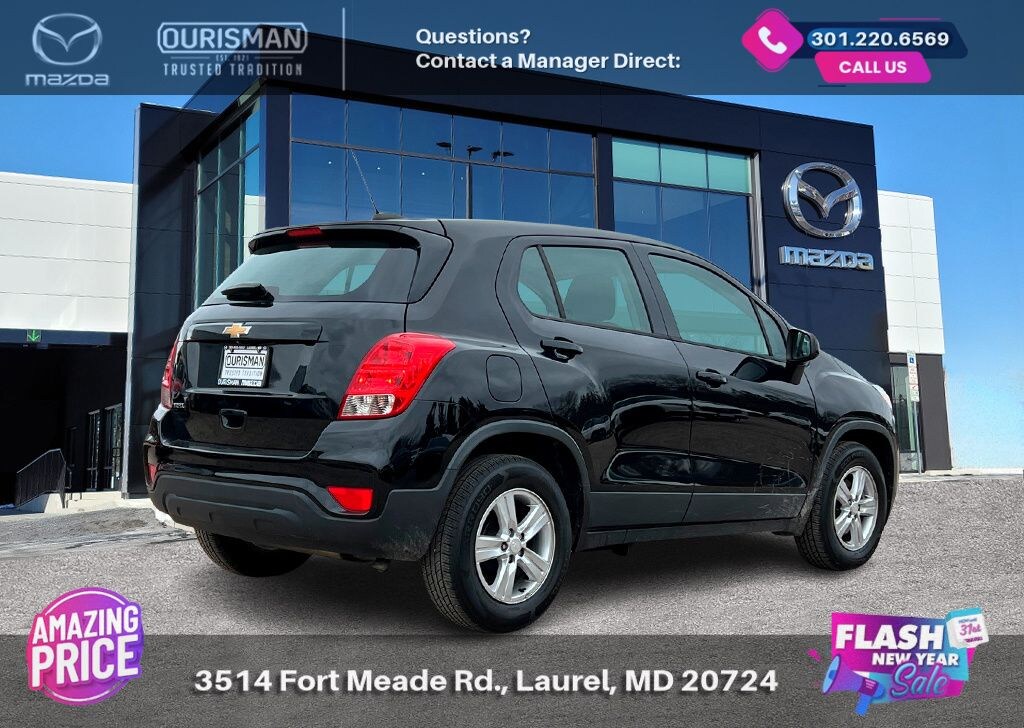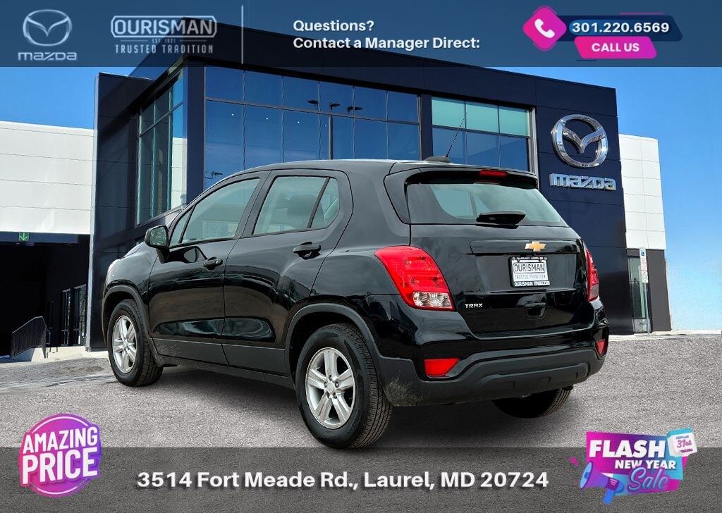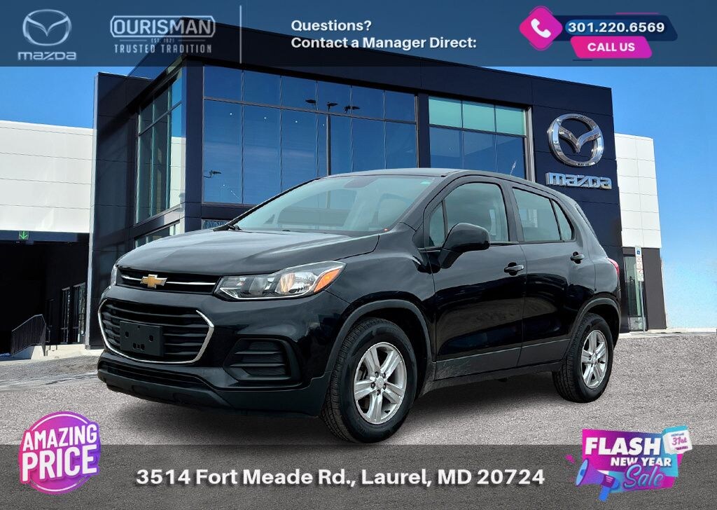 2019 Chevrolet Trax LS Mosaic Black Metallic FWD BLUETOOTH/HANDS FREE, REAR VIEW CAMERA/BACKUP CAMERA, LANE KEEP ASSIST/LANE MITIGATION/ACTIVE LANE ASSIST, APPLE CARPLAY/ANDROID AUTO, PRE-COLLISION SYSTEM/BRAKE SYSTEM, ACTIVE CRUISE CONTROL/ADAPTIVE CRUISE CONTROL, ADVANCED KEYLESS ENTRY. Buyers should take pride in knowing that Maryland has one of the most comprehensive state inspections in the country. Awards: * ALG Residual Value Awards, Residual Value Awards We know you have done a great deal of research, and you don't have time for hours of back-and-forth negotiations. At Ourisman Laurel Campus, your hassle-free purchase is backed by our extensive Market Research. Our No-Haggle pricing ensures you the best value on your vehicle-no games, no gimmicks. Unlike our competitors, we don't add any additional fees to the posted price or certification. You pay only the posted price of the vehicle plus Sales tax, your registration and a MD processing charge of $800Not required by law. Come see why Ourisman Mazda, Mitsubishi, Hyundai, Nissan in Laurel (Ourisman Laurel Campus) offers you the best value for your money! Serving Frederick, Rockville, Hagerstown, Potomac, Baltimore, Silver Spring, DC, Howard County, Washington County, Montgomery County, Anne Arundel. Maryland State Inspected with over 120 point inspection performed by a trained technician. Buyers should take pride in knowing that Maryland has one of the most comprehensive state inspections in the country.