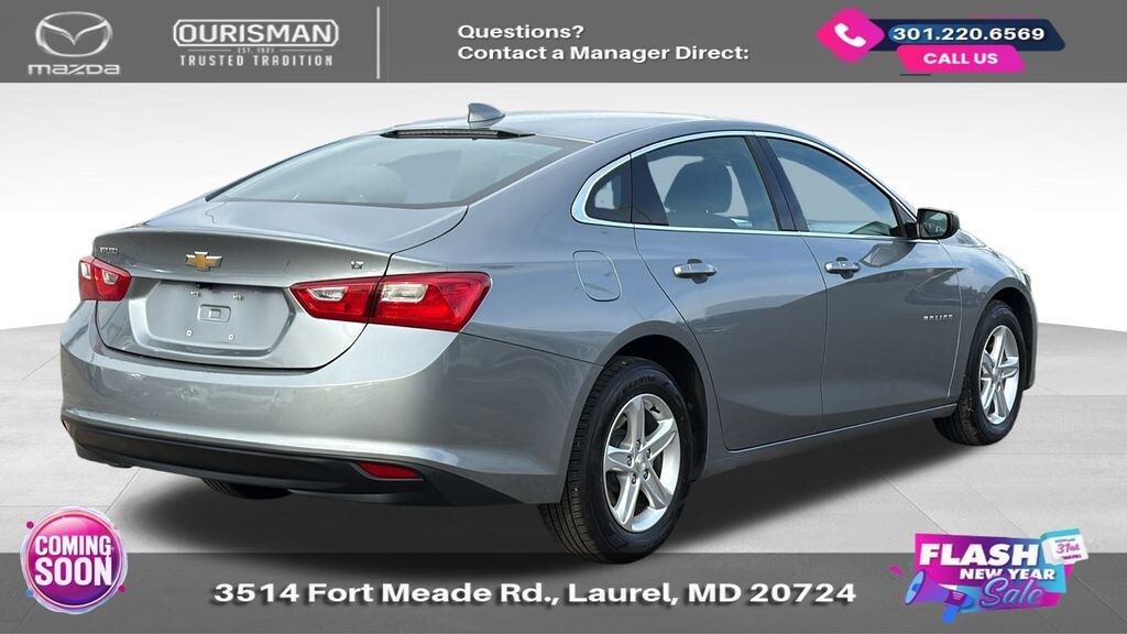 2023 Chevrolet Malibu LT 1LT Sterling Gray Metallic FWD CARFAX One-Owner. BLUETOOTH/HANDS FREE, REAR VIEW CAMERA/BACKUP CAMERA, LANE KEEP ASSIST/LANE MITIGATION/ACTIVE LANE ASSIST, HEATED SEATS, APPLE CARPLAY/ANDROID AUTO, PRE-COLLISION SYSTEM/BRAKE SYSTEM, No accidents or damage reported to CARFAX, 1 OWNER CARFAX, Black Cloth. Buyers should take pride in knowing that Maryland has one of the most comprehensive state inspections in the country. Awards: * ALG Residual Value Awards, Residual Value Awards We know you have done a great deal of research, and you don't have time for hours of back-and-forth negotiations. At Ourisman Laurel Campus, your hassle-free purchase is backed by our extensive Market Research. Our No-Haggle pricing ensures you the best value on your vehicle-no games, no gimmicks. Unlike our competitors, we don't add any additional fees to the posted price or certification. You pay only the posted price of the vehicle plus Sales tax, your registration and a MD processing charge of $800Not required by law. Come see why Ourisman Mazda, Mitsubishi, Hyundai, Nissan in Laurel (Ourisman Laurel Campus) offers you the best value for your money! Serving Frederick, Rockville, Hagerstown, Potomac, Baltimore, Silver Spring, DC, Howard County, Washington County, Montgomery County, Anne Arundel. Maryland State Inspected with over 120 point inspection performed by a trained technician. Buyers should take pride in knowing that Maryland has one of the most comprehensive state inspections in the country.
