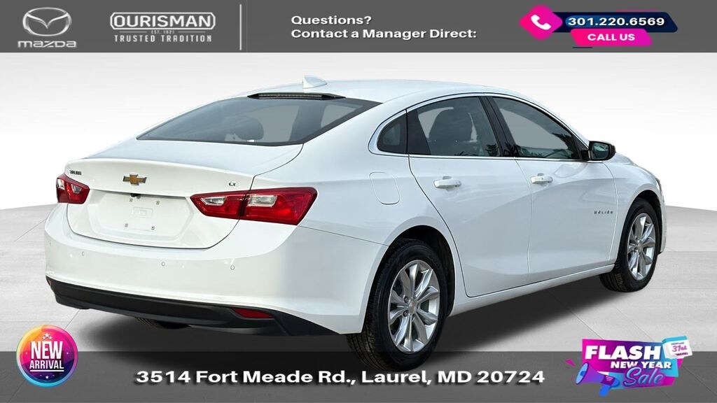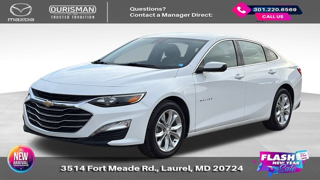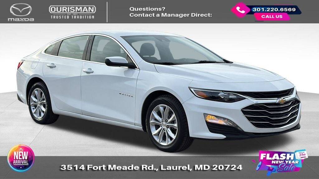 2024 Chevrolet Malibu LT 1LT Summit White FWD CARFAX One-Owner. BLUETOOTH/HANDS FREE, REAR VIEW CAMERA/BACKUP CAMERA, LANE KEEP ASSIST/LANE MITIGATION/ACTIVE LANE ASSIST, APPLE CARPLAY/ANDROID AUTO, PRE-COLLISION SYSTEM/BRAKE SYSTEM, No accidents or damage reported to CARFAX, 1 OWNER CARFAX, POWER ADJUSTABLE SEATS, Black Cloth. Buyers should take pride in knowing that Maryland has one of the most comprehensive state inspections in the country. Awards: * ALG Residual Value Awards, Residual Value Awards We know you have done a great deal of research, and you don't have time for hours of back-and-forth negotiations. At Ourisman Laurel Campus, your hassle-free purchase is backed by our extensive Market Research. Our No-Haggle pricing ensures you the best value on your vehicle-no games, no gimmicks. Unlike our competitors, we don't add any additional fees to the posted price or certification. You pay only the posted price of the vehicle plus Sales tax, your registration and a MD processing charge of $800Not required by law. Come see why Ourisman Mazda, Mitsubishi, Hyundai, Nissan in Laurel (Ourisman Laurel Campus) offers you the best value for your money! Serving Frederick, Rockville, Hagerstown, Potomac, Baltimore, Silver Spring, DC, Howard County, Washington County, Montgomery County, Anne Arundel. Maryland State Inspected with over 120 point inspection performed by a trained technician. Buyers should take pride in knowing that Maryland has one of the most comprehensive state inspections in the country.
