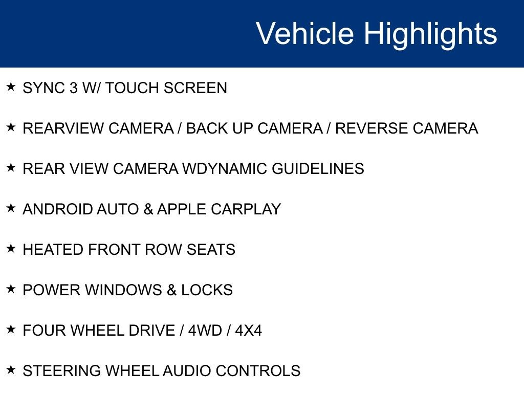 - Smart device integration: SYNC 3/Apple CarPlay/Android Auto