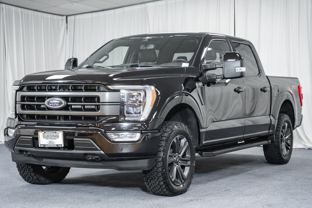 PANORAMIC ROOF / DUAL SUNROOFS / TWIN PANEL MOONROOF, POWER MOONROOF / SUNROOF / POWER TILT SLIDING ROOF, VOICE ACTIVATED NAVIGATION, NAVIGATION / GPS / NAV, FORD CO-PILOT360, BLIS / BLIND SPOT MONITORING / BLIND SIDE ALERT, DYNAMIC RADAR CRUISE CONTROL / ADAPTIVE CRUISE CONTROL / SMART CRUISE CONTROL, LANE DEPARTURE WARNING, LANE DEPARTURE ALERT / LANE KEEPING ALERT, REARVIEW CAMERA / BACK UP CAMERA / REVERSE CAMERA, REAR VIEW CAMERA WDYNAMIC GUIDELINES, ANDROID AUTO & APPLE CARPLAY, LEATHER SEATS, HEATED & COOLED FRONT ROW SEATS, HEATED FRONT ROW SEATS, HEATED SECOND ROW SEATS, POWER WINDOWS & LOCKS, FOUR WHEEL DRIVE / 4WD / 4X4, STEERING WHEEL AUDIO CONTROLS, CRUISE CONTROL, SYNC 4, WIRELESS CHARGING, REMOTE START, REAR CROSS TRAFFIC ALERT, PUSH-BUTTON START, PREMIUM AUDIO W/INTEGRATED NAV & APP STE, POWER TAILGATE LOCK, POWER SLIDING REAR WINDOW, BLUETOOTH AUDIO STREAMING, HEATED STEERING WHEEL, DUAL ZONE A/C CONTROLS, BLUETOOTH, BACK UP SENSORS, B&O SOUND SYSTEM, AUTO HIGH BEAMS, 360- DEGREE CAMERA, 36 GALLON TANK / 36 GAL TANK, 145" WHEELBASE, 2nd Row Heated Seats, 4-Wheel Disc Brakes, 4x4 FX4 Off-Road Bodyside Decal, 8 Speakers, ABS brakes, Accent-Color Angular Step Bars, Air Conditioning, AM/FM radio: SiriusXM with 360L, Auto High-beam Headlights, Automatic temperature control, Body-Color Front & Rear Bumpers, Box Side Decals, Brake assist, Chrome Single-Tip Exhaust, Class IV Trailer Hitch Receiver, Compass, Connected Built-In Navigation, Dark 2-Bar & 1 Minor Bar Style Grille, Delay-off headlights, Electronic Locking w/3.31 Axle Ratio, Electronic Stability Control, Equipment Group 502A High, Evasive Steering Assist, Exterior Parking Camera Rear, Ford Co-Pilot360 Assist 2.0, Front Bucket Seats, Front Center Armrest, Front dual zone A/C, Front fog lights, Front reading lights, Fully automatic headlights, FX4 Off-Road Package, GVWR: 7,050 lbs Payload Package, Heated front seats, Heated steering wheel, Hill Descent Control, Integrated Trailer Brake Controller, Intelligent Adaptive Cruise Control w/Stop & Go, Intersection Assist, Lariat Sport Appearance Package, Leather-Trimmed Bucket Seats, LED Projector w/Dynamic Bending Headlamps, Low tire pressure warning, Monotube Rear Shocks, Navigation System, Navigation system: Connected Navigation, Off-Road Tuned Front Shock Absorbers, Panic alarm, Passenger door bin, Power driver seat, Power passenger seat, Power steering, Power Tilt/Telescoping Steering Column w/Memory, Power windows, Pro Trailer Backup Assist & Pro Trailer Hitch Assist, Radio data system, Radio: B&O Sound System by Bang & Olufsen, Rain-Sensing Wipers, Rear reading lights, Rear window defroster, Remote keyless entry, Rock Crawl Mode, Security system, Speed control, Speed Sign Recognition, Speed-sensing steering, Split folding rear seat, Steering wheel mounted audio controls, SYNC 4 w/Enhanced Voice Recognition, Traction control, Trailer Tow Package, Twin Panel Moonroof, Variably intermittent wipers, Ventilated front seats, Wheels: 20" Chrome-Like PVD, Wireless Charging Pad. 2023 Ford F-150 Lariat 4WD Agate Black Metallic 5.0L V8