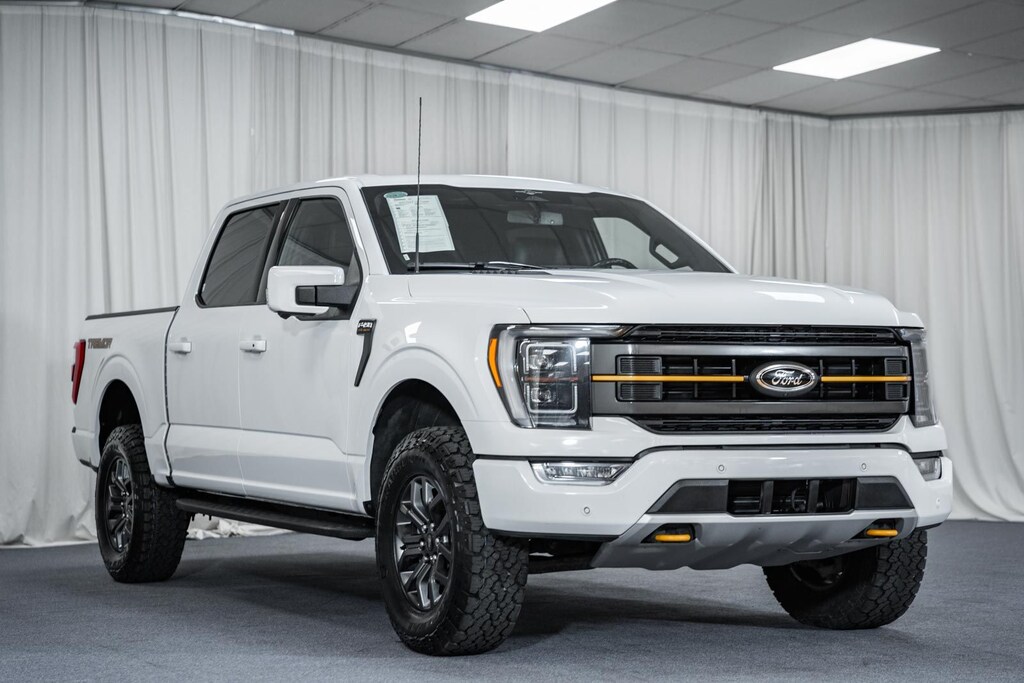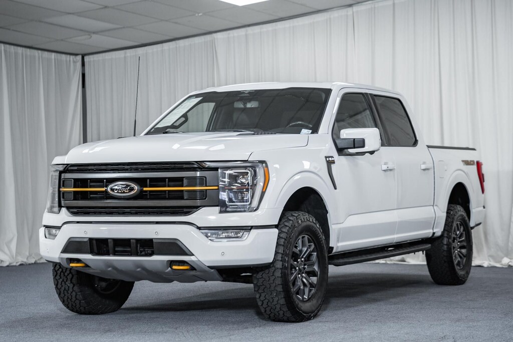 PANORAMIC ROOF / DUAL SUNROOFS / TWIN PANEL MOONROOF, POWER MOONROOF / SUNROOF / POWER TILT SLIDING ROOF, VOICE ACTIVATED NAVIGATION, NAVIGATION / GPS / NAV, FORD CO-PILOT360, BLIS / BLIND SPOT MONITORING / BLIND SIDE ALERT, DYNAMIC RADAR CRUISE CONTROL / ADAPTIVE CRUISE CONTROL / SMART CRUISE CONTROL, LANE DEPARTURE WARNING, LANE DEPARTURE ALERT / LANE KEEPING ALERT, REARVIEW CAMERA / BACK UP CAMERA / REVERSE CAMERA, REAR VIEW CAMERA WDYNAMIC GUIDELINES, ANDROID AUTO & APPLE CARPLAY, LEATHER SEATS, HEATED & COOLED FRONT ROW SEATS, HEATED FRONT ROW SEATS, HEATED SECOND ROW SEATS, POWER WINDOWS & LOCKS, FOUR WHEEL DRIVE / 4WD / 4X4, STEERING WHEEL AUDIO CONTROLS, CRUISE CONTROL, SYNC 4, WIRELESS CHARGING, REMOTE START, REAR CROSS TRAFFIC ALERT, PUSH-BUTTON START, POWER TAILGATE LOCK, POWER SLIDING REAR WINDOW, BLUETOOTH AUDIO STREAMING, HEATED STEERING WHEEL, ECO BOOST ENGINE, DUAL ZONE A/C CONTROLS, BLUETOOTH, BACK UP SENSORS, B&O SOUND SYSTEM, AUTO HIGH BEAMS, 360- DEGREE CAMERA, 145" WHEELBASE, 4WD, 12" Productivity Screen in Instrument Cluster, 2nd Row Heated Seats, 360 Degree Camera, 4-Wheel Disc Brakes, ABS brakes, Advanced Security Pack, Air Conditioning, Auto High-beam Headlights, Automatic temperature control, Brake assist, Compass, Connected Built-In Navigation, Delay-off headlights, Electronic Locking w/3.73 Axle Ratio, Electronic Stability Control, Equipment Group 402A High, Evasive Steering Assist, Exterior Parking Camera Rear, Ford Co-Pilot360 Assist 2.0, Front dual zone A/C, Front reading lights, Fully automatic headlights, Heated Steering Wheel, Intelligent Adaptive Cruise Control w/Stop & Go, Intersection Assist, LED Projector w/Dynamic Bending Headlamps, Low tire pressure warning, Navigation System, Navigation system: Connected Navigation, Panic alarm, Passenger door bin, Power Glass Sideview Mirr w/Body-Color Skull Caps, Power steering, Power Tilt/Telescoping Steering Column w/Memory, Power windows, Power-Adjustable Pedals w/Memory, Power-Sliding Rear Window, Pro Trailer Backup Assist & Pro Trailer Hitch Assist, Radio data system, Radio: B&O Sound System by Bang & Olufsen, Rain-Sensing Wipers, Rear window defroster, Remote keyless entry, Security system, Speed control, Speed Sign Recognition, Speed-sensing steering, Split folding rear seat, Steering wheel mounted audio controls, Traction control, Unique Tremor Leather-Trimmed Bucket Seats, Universal Garage Door Opener, Variably intermittent wipers, Wireless Charging Pad. 2023 Ford F-150 Tremor 4WD Oxford White 3.5L V6 EcoBoost