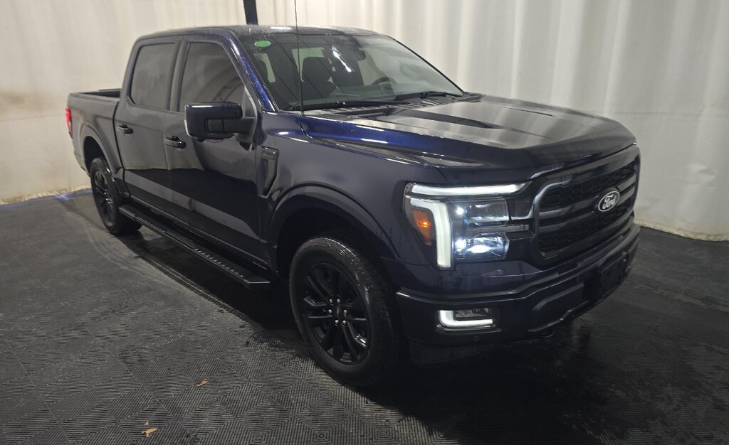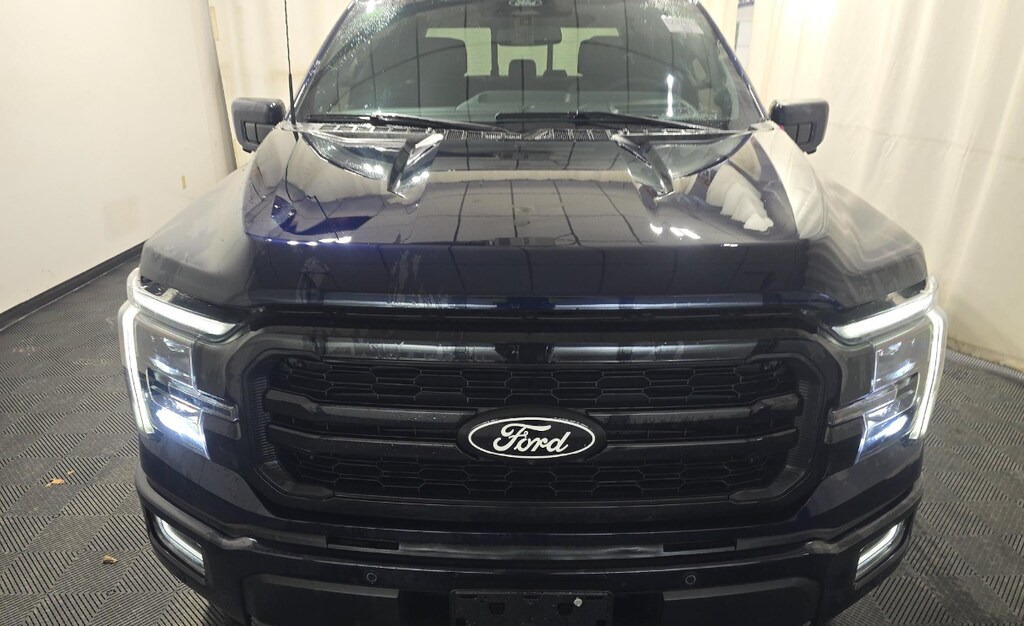 PANORAMIC ROOF / DUAL SUNROOFS / TWIN PANEL MOONROOF, POWER MOONROOF / SUNROOF / POWER TILT SLIDING ROOF, VOICE ACTIVATED NAVIGATION, NAVIGATION / GPS / NAV, BLIS / BLIND SPOT MONITORING / BLIND SIDE ALERT, DYNAMIC RADAR CRUISE CONTROL / ADAPTIVE CRUISE CONTROL / SMART CRUISE CONTROL, LANE DEPARTURE WARNING, LANE DEPARTURE ALERT / LANE KEEPING ALERT, REARVIEW CAMERA / BACK UP CAMERA / REVERSE CAMERA, REAR VIEW CAMERA WDYNAMIC GUIDELINES, ANDROID AUTO & APPLE CARPLAY, LEATHER SEATS, HEATED & COOLED FRONT ROW SEATS, HEATED FRONT ROW SEATS, HEATED SECOND ROW SEATS, POWER WINDOWS & LOCKS, FOUR WHEEL DRIVE / 4WD / 4X4, STEERING WHEEL AUDIO CONTROLS, CRUISE CONTROL, SYNC 4, WIRELESS CHARGING, REMOTE START, REAR CROSS TRAFFIC ALERT, PUSH-BUTTON START, POWER TAILGATE LOCK, POWER SLIDING REAR WINDOW, BLUETOOTH AUDIO STREAMING, HEATED STEERING WHEEL, ECO BOOST ENGINE, DUAL ZONE A/C CONTROLS, BLUETOOTH, BACK UP SENSORS, BLUECRUISE, B&O SOUND SYSTEM, 360- DEGREE CAMERA, 36 GALLON TANK / 36 GAL TANK, 145" WHEELBASE, 2nd Row Heated Seats, 3.31 Axle Ratio, 4-Wheel Disc Brakes, 6" Extended Chrome Running Boards, 8 Speakers, ABS brakes, Air Conditioning, Auto High-beam Headlights, Automatic temperature control, Black Exterior Badging, Black Grille, Black Taillamp Bezels, Body-Color Front & Rear Bumpers, Body-Color Skull Caps & Door Handles, Brake assist, Compass, Console Worksurface, Dark Interior Appliques, Delay-off headlights, Dual Exhaust w/Black Tips, Equipment Group 502A High, Front Bucket Seats, Front Center Armrest, Front dual zone A/C, Front fog lights, Front reading lights, Fully automatic headlights, Gray Box Side Decal, Heads-Up Display, Heated front seats, Heated steering wheel, Lariat Black Appearance Package, Leather-Trimmed Bucket Seats, Low tire pressure warning, Matte Black Tailgate F-150 Decal, Mobile Office Package, Navigation System, Navigation system: Connected Navigation, Panic alarm, Partitioned Lockable Rear Storage, Passenger door bin, Power driver seat, Power passenger seat, Power steering, Power windows, Radio: B&O Unleashed Sound System by Bang & Olufsen, Rain sensing wipers, Rear window defroster, Remote keyless entry, Security system, Speed control, Split folding rear seat, Steering wheel mounted audio controls, Traction control, Twin Panel Moonroof, Variably intermittent wipers, Ventilated front seats, Wheels: 20" Gloss Black Painted Aluminum, Wireless Charging. 2024 Ford F-150 Lariat Black Pkg Pano Roof Blue Cruise 4WD Antimatter Blue Metallic 3.5L V6 EcoBoost