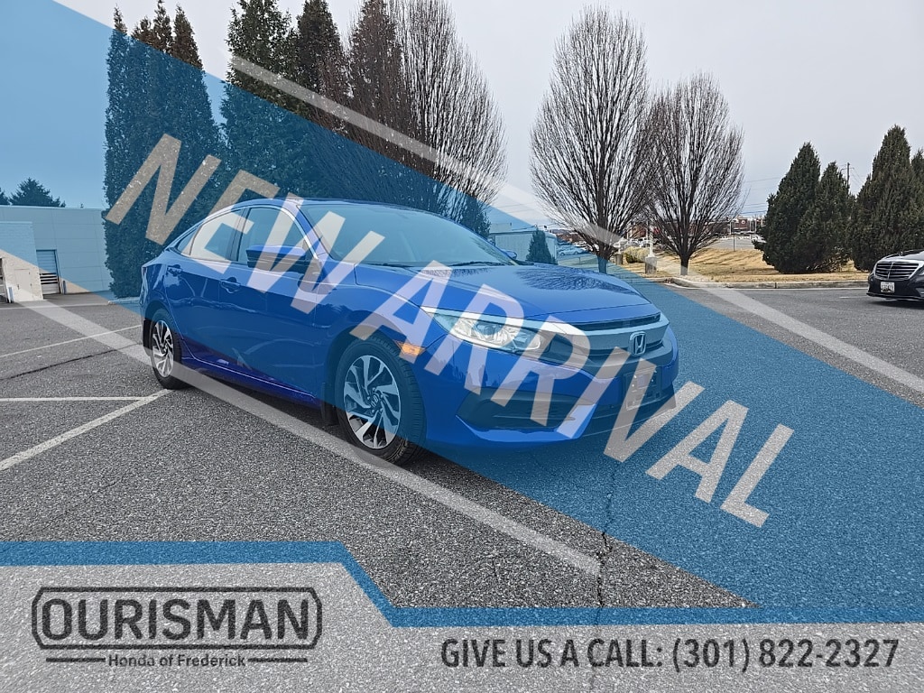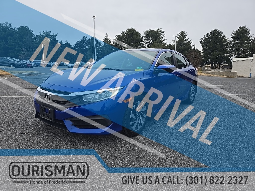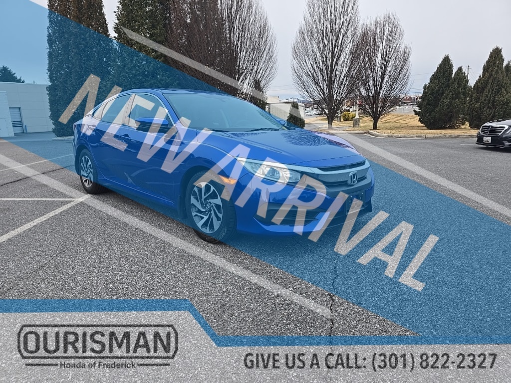 Ourisman Honda of Frederick is pleased to present this 2016 Honda Civic EX. The 2016 Honda Civic EX offers a blend of style, comfort, and technology that enhances the driving experience. Powered by a 2.0-liter 4-cylinder engine paired with a continuously variable transmission (CVT), the EX provides a smooth and efficient ride. On the outside, it features 16-inch alloy wheels, a power moonroof, and Honda's smart entry system with push-button start for added convenience. Inside, the EX trim includes a 7-inch touchscreen infotainment system with Apple CarPlay and Android Auto integration, allowing seamless smartphone connectivity. The cabin offers premium cloth seating, automatic climate control, and a rearview camera with dynamic guidelines. Additional features include remote start, a 60/40 split-folding rear seat for flexible cargo space, and Honda LaneWatch, which displays a live video feed of the passenger-side blind spot. The 2016 Civic EX combines advanced technology and modern comfort, making it an appealing choice for those seeking practicality with a touch of sophistication.
