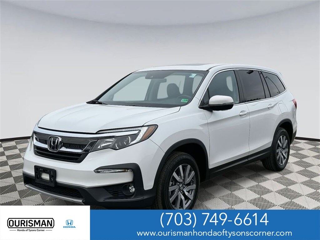 ONE OWNER, CLEAN CARFAX, HONDA SENSING, LIKE NEW, DEALER WARRANTY INCLUDED!, AWD, 18" Machine-Finished Alloy Wheels, 3rd row seats: split-bench, 4-Wheel Disc Brakes, 4.33 Axle Ratio, 7 Speakers, A/V remote: CabinControl, ABS brakes, Air Conditioning, Alloy wheels, AM/FM radio: SiriusXM, Apple CarPlay/Android Auto, Auto High-beam Headlights, Auto-dimming Rear-View mirror, Automatic temperature control, Blind Spot Information (BSI) System warning, Brake assist, Bumpers: body-color, Delay-off headlights, Driver door bin, Driver vanity mirror, Dual front impact airbags, Dual front side impact airbags, Electronic Stability Control, Emergency communication system: HondaLink Assist, Exterior Parking Camera Rear, Forward collision: Collision Mitigation Braking System (CMBS) + FCW mitigation, Four wheel independent suspension, Front anti-roll bar, Front Bucket Seats, Front Center Armrest, Front dual zone A/C, Front fog lights, Front reading lights, Fully automatic headlights, Garage door transmitter: HomeLink, Heated door mirrors, Heated Front Bucket Seats, Heated front seats, Illuminated entry, Lane departure: Lane Keeping Assist System (LKAS) active, Leather Seat Trim, Low tire pressure warning, Memory seat, Occupant sensing airbag, Outside temperature display, Overhead airbag, Overhead console, Panic alarm, Passenger door bin, Passenger vanity mirror, Power door mirrors, Power driver seat, Power Liftgate, Power moonroof, Power passenger seat, Power steering, Power windows, Radio data system, Radio: 215-Watt Audio System, Rear air conditioning, Rear anti-roll bar, Rear reading lights, Rear seat center armrest, Rear window defroster, Rear window wiper, Reclining 3rd row seat, Remote keyless entry, Security system, Speed control, Speed-sensing steering, Speed-Sensitive Wipers, Split folding rear seat, Spoiler, Steering wheel mounted audio controls, Tachometer, Telescoping steering wheel, Tilt steering wheel, Traction control, Trip computer, Turn signal indicator mirrors, Variably intermittent wipers. 2021 Honda Pilot EX-L AWD Platinum White Pearl 3.5L V6 24V SOHC i-VTEC