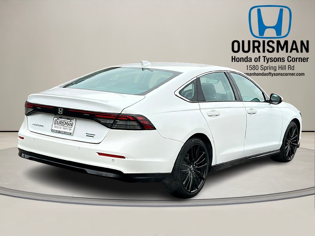 Experience top-tier efficiency, premium comfort, and advanced technology in this 2023 Honda Accord Hybrid Touring, available now at Ourisman Honda of Tysons Corner. Perfect for drivers throughout Tysons Corner, Vienna, McLean, Arlington, Fairfax, Ashburn, and the greater DMV area, the Accord Hybrid Touring represents the most refined expression of Hondaâs award-winning midsize sedan. Powered by Hondaâs advanced hybrid powertrain, this Accord delivers smooth, quiet acceleration and exceptional fuel economy, making it ideal for both daily commuting and long-distance travel. The Touring trim elevates the experience with leather seating, heated and ventilated front seats, a power moonroof, a head-up display, and a premium Bose audio system. Inside, youâll enjoy a large touchscreen display with wireless Apple CarPlay and Android Auto, built-in navigation, wireless charging, digital gauge cluster, and upscale materials throughout the cabin. The spacious interior offers excellent rear-seat legroom and a generous trunk, blending comfort with everyday practicality. Honda Sensing safety technology comes standard, including adaptive cruise control, lane keeping assist, collision mitigation braking, blind-spot monitoring, and road departure mitigation, providing confidence on every drive. Known for its refinement, advanced features, and strong resale value, the 2023 Accord Hybrid Touring stands out as one of the most desirable hybrid sedans on the road. Fully inspected and ready for its next owner, this Accord Hybrid Touring offers luxury-level features with exceptional efficiency. Contact us today to schedule your test drive or secure this Accord before itâs gone.