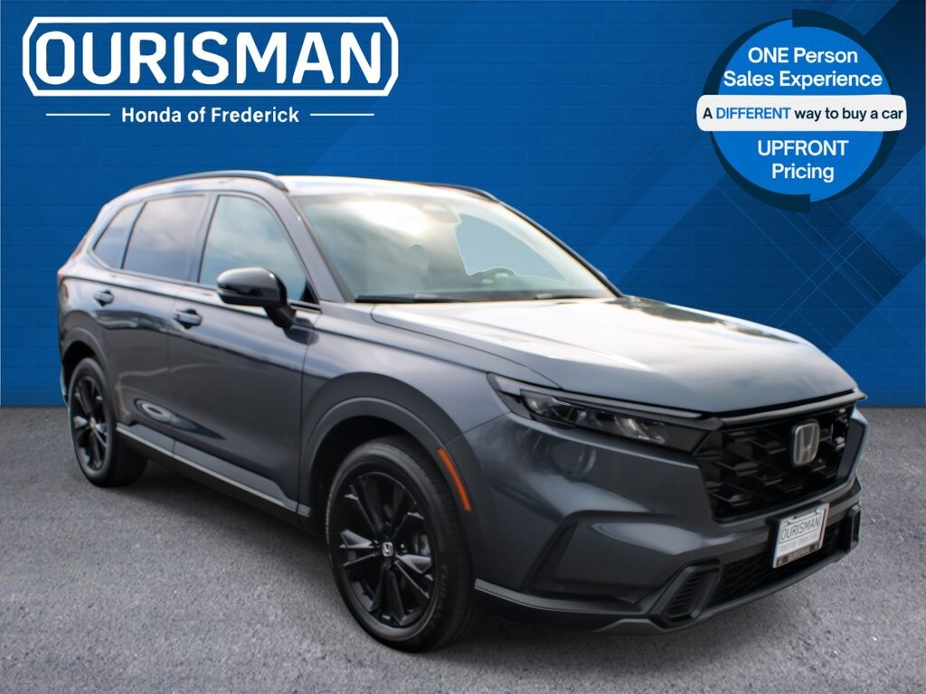 Ourisman Honda of Frederick is pleased to present this 2023 Honda CR-V Hybrid Sport Touring. The 2023 Honda CR-V Hybrid Sport Touring is the pinnacle of the CR-V lineup, combining top-tier performance, luxury, and advanced technology. Powered by a refined 2.0L 4-cylinder engine paired with two electric motors, it delivers a total of 204 horsepower and features standard all-wheel drive for enhanced traction and control. The exterior boasts exclusive 19-inch black alloy wheels, LED headlights, a hands-free power tailgate, roof rails, and a panoramic moonroof. Inside, the Sport Touring trim offers a luxurious cabin with leather-trimmed seats, a 12-speaker Bose premium audio system, and a wireless charging pad. Advanced technology includes a 9-inch touchscreen with wireless Apple CarPlay and Android Auto, integrated navigation, and a head-up display. Safety and driver-assist features are comprehensive, with the Honda Sensing suite providing adaptive cruise control, lane-keeping assist, blind-spot monitoring, and traffic sign recognition. Unique sport styling accents and a spacious, refined interior make the 2023 CR-V Hybrid Sport Touring a standout choice for those seeking eco-friendly performance with high-end amenities.