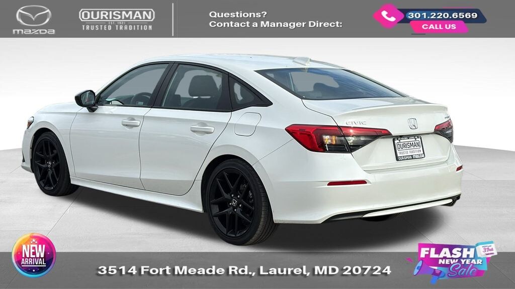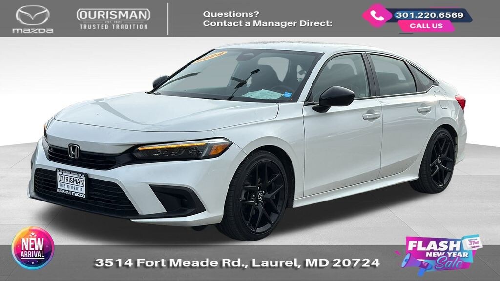 2024 Honda Civic Sport White FWD CARFAX One-Owner. BLUETOOTH/HANDS FREE, REAR VIEW CAMERA/BACKUP CAMERA, BLIND SPOT MONITORING SYSTEM, LANE KEEP ASSIST/LANE MITIGATION/ACTIVE LANE ASSIST, APPLE CARPLAY/ANDROID AUTO, PRE-COLLISION SYSTEM/BRAKE SYSTEM, No accidents or damage reported to CARFAX, 1 OWNER CARFAX, Black Artificial Leather. Buyers should take pride in knowing that Maryland has one of the most comprehensive state inspections in the country. Awards: * ALG Residual Value Awards, Residual Value Awards We know you have done a great deal of research, and you don't have time for hours of back-and-forth negotiations. At Ourisman Laurel Campus, your hassle-free purchase is backed by our extensive Market Research. Our No-Haggle pricing ensures you the best value on your vehicle-no games, no gimmicks. Unlike our competitors, we don't add any additional fees to the posted price or certification. You pay only the posted price of the vehicle plus Sales tax, your registration and a MD processing charge of $800Not required by law. Come see why Ourisman Mazda, Mitsubishi, Hyundai, Nissan in Laurel (Ourisman Laurel Campus) offers you the best value for your money! Serving Frederick, Rockville, Hagerstown, Potomac, Baltimore, Silver Spring, DC, Howard County, Washington County, Montgomery County, Anne Arundel. Maryland State Inspected with over 120 point inspection performed by a trained technician. Buyers should take pride in knowing that Maryland has one of the most comprehensive state inspections in the country.