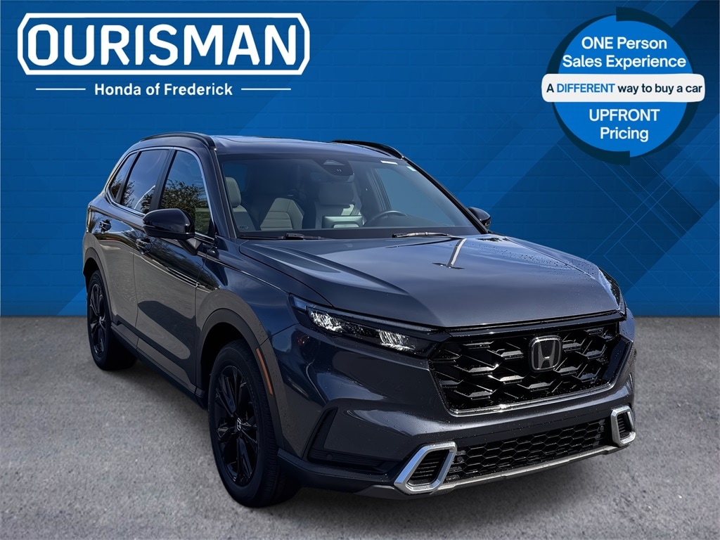 Ourisman Honda of Frederick is pleased to present this 2025 Honda CR-V Hybrid Sport Touring. The 2025 Honda CR-V Hybrid Sport Touring trim brings together premium comfort, sporty styling, and advanced tech in a well-equipped package. Under the hood, it features a 204-horsepower two-motor hybrid powertrain paired with Honda’s “Real Time AWD” system as standard, giving both good acceleration and confidence in varying road or weather conditions. On the outside, it stands out with gloss-black 19-inch alloy wheels, dual chrome exhaust finishers, roof rails, a large gloss-black front grille with platinum-accent lower bumper, and LED headlights & taillights. Utility is enhanced with a hands-free access power tailgate that opens via a foot gesture, plus a programmable height setting.
