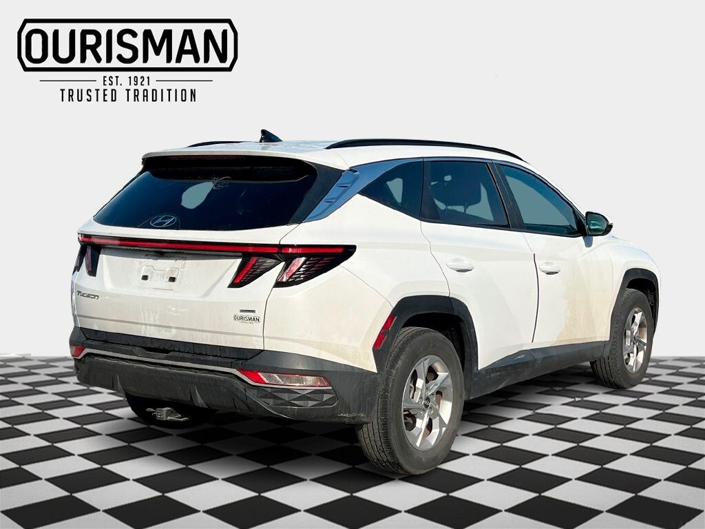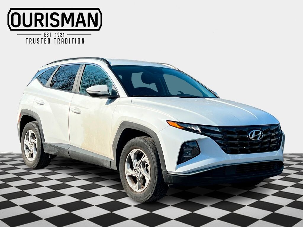 Experience the perfect blend of modern style and everyday utility with this 2023 Hyundai Tucson SEL. Finished in elegant Serenity White Pearl with a clean black interior, this one-owner SUV is equipped with the advanced HTRAC All-Wheel Drive system for confidence in all weather conditions. Having covered 38,400 miles, this vehicle features a consistent maintenance history, including regular oil changes and professional care.