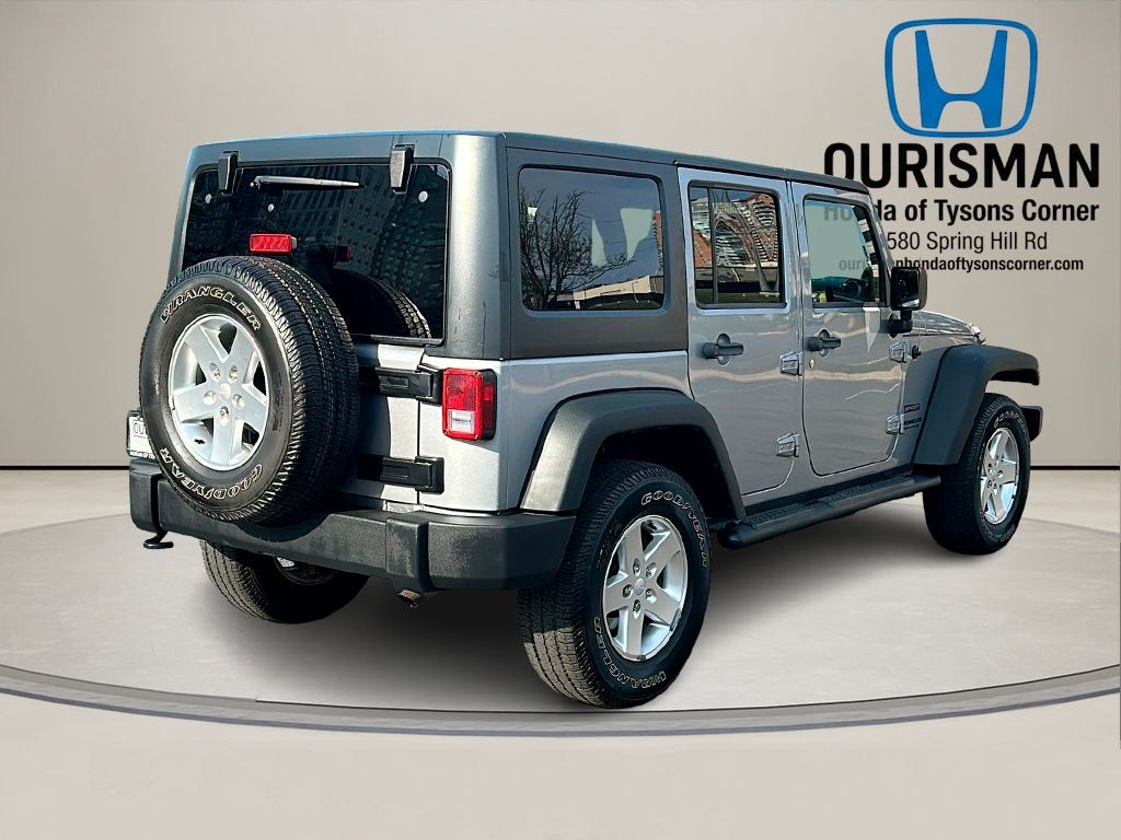 CLEAN CARFAX, 16" x 7.0" Luxury Styled Steel Wheels, 17" x 7.5" Aluminum Wheels, 3.21 Rear Axle Ratio, 4-Wheel Disc Brakes, 6 Speakers, ABS brakes, Air Conditioning, AM/FM radio, Auto-Dimming Mirror w/Reading Lamp, Brake assist, CD player, Chrome/Leather Wrapped Shift Knob, Cloth Bucket Seats, Compass, Deep Tint Sunscreen Windows, Driver door bin, Driver vanity mirror, Dual front impact airbags, Electronic Stability Control, Front anti-roll bar, Front Bucket Seats, Front Center Armrest w/Storage, Front fog lights, Integrated roll-over protection, Leather Wrapped Steering Wheel, Low tire pressure warning, Normal Duty Suspension, Occupant sensing airbag, Outside temperature display, Passenger door bin, Passenger vanity mirror, Power steering, Quick Order Package 23S, Radio: Uconnect 130 AM/FM/CD/MP3, Rear anti-roll bar, Speed control, Split folding rear seat, Steering wheel mounted audio controls, Sunrider Soft Top, Tachometer, Tilt steering wheel, Traction control, Trip computer, Variably intermittent wipers. 2014 Jeep Wrangler Unlimited Sport 4WD Billet Metallic Clearcoat 3.6L V6 24V VVT