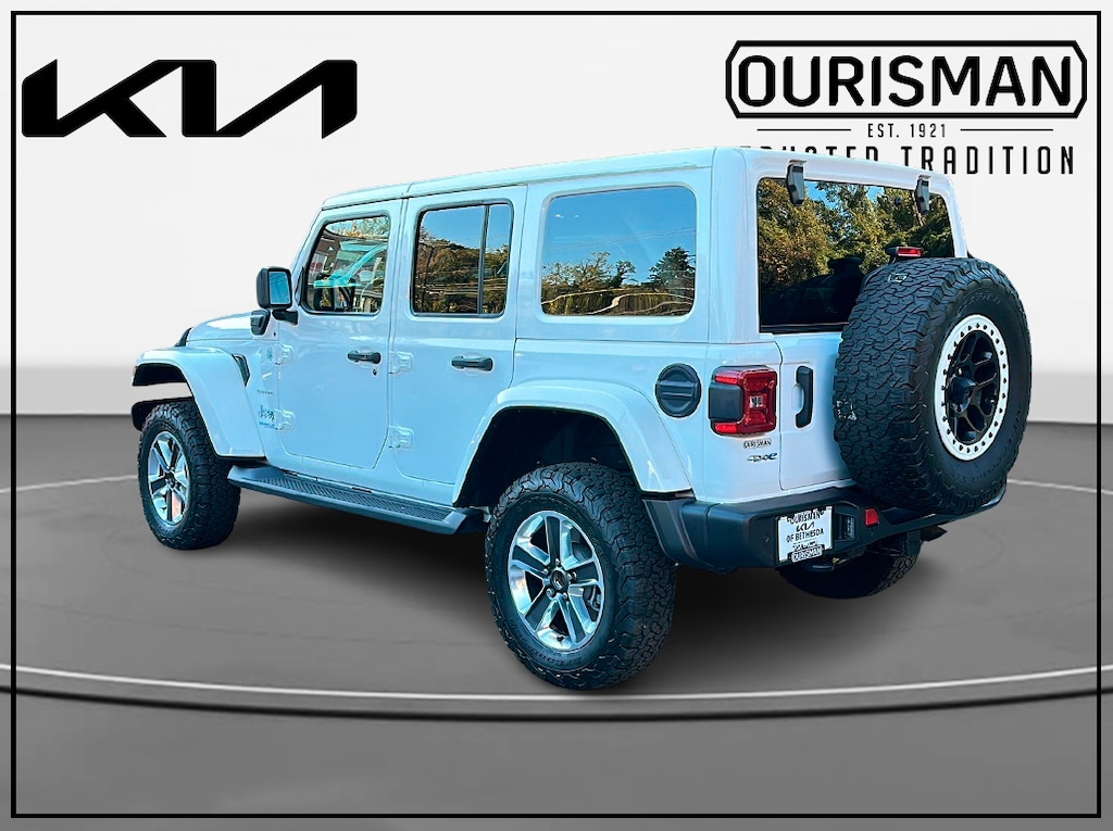 2021 Jeep Wrangler Unlimited Sahara 4xe CARFAX One-Owner. 4WD Bright White Clearcoat REMOTE ENGINE START, BACKUP CAMERA, FRONT HEATED SEATS, ALL WHEEL DRIVE, APPLE CARPLAY/ANDROID AUTO, BLUETOOTH, LEATHER INTERIOR, LOCAL TRADE IN, LOCALLY OWNED, LOW MILES, NAVIGATION, PRE-COLLISION SYSTEM, SELF PACING CRUISE CONTROL/AUTO DISTANCE CRUISE CONTROL/RADAR CRUISE CONTROL, SMART CRUISE CONTROL, Smart Key w/ Push Button Start, WIRELESS APPLE CARPLAY/ANDROID AUTO, MARYLAND STATE INSPECTED, PARKING SENSORS, CLEAN CARFAX!! 1 OWNER!, Wrangler Unlimited Sahara 4xe, 2.0L I4 DOHC, 8-Speed Automatic, 4WD, Bright White Clearcoat, Dark Saddle/Black w/Leather Trimmed Seats w/Sahara Logo, 7 & 4 Pin Wiring Harness, 700 Amp Maintenance Free Battery, Adaptive Cruise Control w/Stop, Advanced Brake Assist, Advanced Safety Group, Auto High Beam Headlamp Control, Auxiliary Switches, Blind Spot & Cross Path Detection, Body Color 3-Piece Hard Top, Class II Receiver Hitch, Cold Weather Group, Dual Top Group, Freedom Panel Storage Bag, Full Speed Forward Collision Warning Plus, Heated Front Seats, Heated Steering Wheel, Navigation System, ParkSense Rear Park Assist System, Premium Black Sunrider Soft Top w/Dual Top Group, Quick Order Package 29P, Rear Window Defroster, Rear Window Wiper/Washer, Remote Start System, Safety Group, Trailer Tow & HD Electrical Group. Odometer is 14351 miles below market average!
