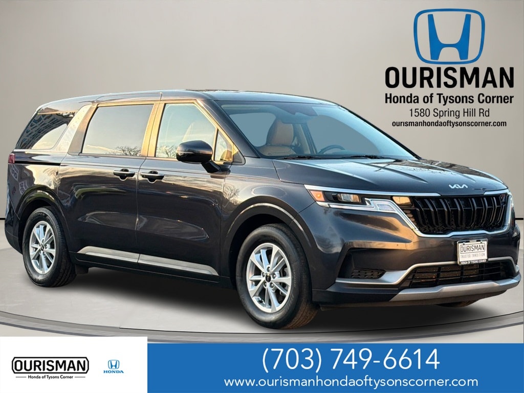 Experience family-friendly versatility, modern design, and everyday practicality in this 2023 Kia Carnival LX, available now at Ourisman Honda of Tysons Corner. A spacious and well-equipped minivan alternative for drivers throughout Tysons Corner, Vienna, McLean, Arlington, Fairfax, Ashburn, and the greater DMV area, the Carnival LX delivers a smooth, confident ride with flexible seating and abundant cargo space for families, commuters, and weekend adventures alike. Powered by a responsive engine paired with a smooth automatic transmission, this Carnival offers confident acceleration, composed handling, and excellent capability for daily driving, busy schedules, and longer trips. The LX trim provides thoughtful standard features including comfortable cloth seating, tri-zone automatic climate control to keep all passengers comfortable, power sliding rear doors for easier access, and a user-friendly infotainment system with a touchscreen display that includes Apple CarPlay and Android Auto compatibility, Bluetooth connectivity, and steering wheel-mounted controls for added convenience. Inside, the three-row cabin offers generous room for passengers in every seat, flexible second- and third-row configurations to adapt to family needs or gear storage, and a versatile cargo area ideal for groceries, luggage, sports equipment, or weekend getaways. Advanced safety and driver-assist technologies help enhance confidence on every drive with features such as a rearview camera, blind-spot monitoring, rear cross-traffic alert, lane-keeping assist, forward collision warning, and automatic emergency braking on equipped models. Known for its strong value, practical design, and everyday usability, the 2023 Kia Carnival LX stands out as a well-rounded choice for those seeking a comfortable and capable minivan-style vehicle without sacrificing style or technology. Fully inspected and ready for its next owner, this Carnival offers comfort, space, and peace of mind in one exceptional package. Contact us today to schedule your test drive or secure this Carnival before its gone.