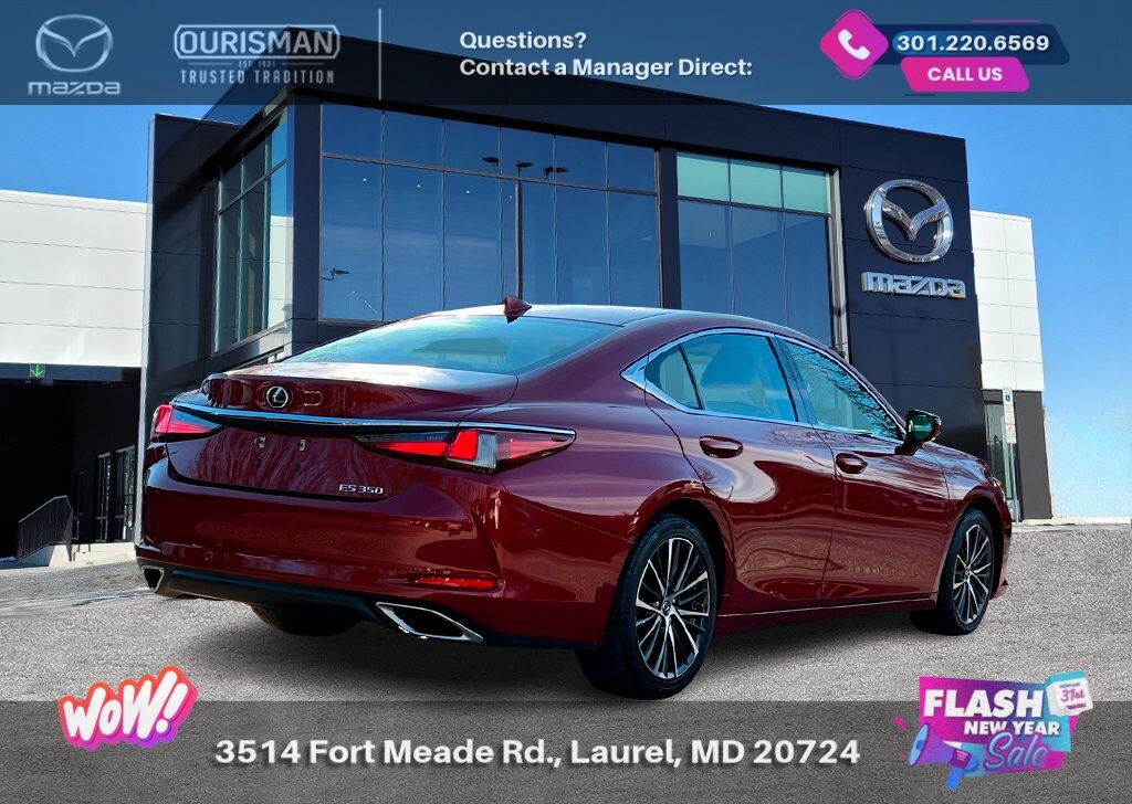 2024 Lexus ES 350 Red FWD CARFAX One-Owner. NAVIGATION/NAVI/NAV SYSTEM/GPS, SUNROOF/MOONROOF, BLUETOOTH/HANDS FREE, REAR VIEW CAMERA/BACKUP CAMERA, BLIND SPOT MONITORING SYSTEM, LANE KEEP ASSIST/LANE MITIGATION/ACTIVE LANE ASSIST, HEATED SEATS, COOLED SEATS/VENTILATED SEATS, APPLE CARPLAY/ANDROID AUTO, PRE-COLLISION SYSTEM/BRAKE SYSTEM, PREMIUM PACKAGE, LEATHER INTERIOR, ACTIVE CRUISE CONTROL/ADAPTIVE CRUISE CONTROL, 1 OWNER CARFAX, POWER ADJUSTABLE SEATS, ADVANCED KEYLESS ENTRY, REAR CROSS TRAFFIC ALERT, SMARTPHONE WIRELESS CHARGER, Acorn w/Wood BlackTrim w/Leather Seat Trim, Heated & Ventilated Seats, Heated Leather 3-Spoke Steering Wheel, Intuitive Parking Assist w/Auto Braking, Parking Support Alert/Brake, Perforated NuLuxe Seat Trim (LD), Power Tilt/Telescoping Steering Wheel w/Memory, Power-Folding Outside Mirrors w/Memory, Premium Package, Rain Sensing Wipers, Windshield De-Icer, Wireless Charger, Wood Trim. Buyers should take pride in knowing that Maryland has one of the most comprehensive state inspections in the country. Awards: * ALG Residual Value Awards, Residual Value Awards We know you have done a great deal of research, and you don't have time for hours of back-and-forth negotiations. At Ourisman Laurel Campus, your hassle-free purchase is backed by our extensive Market Research. Our No-Haggle pricing ensures you the best value on your vehicle-no games, no gimmicks. Unlike our competitors, we don't add any additional fees to the posted price or certification. You pay only the posted price of the vehicle plus Sales tax, your registration and a MD processing charge of $800Not required by law. Come see why Ourisman Mazda, Mitsubishi, Hyundai, Nissan in Laurel (Ourisman Laurel Campus) offers you the best value for your money! Serving Frederick, Rockville, Hagerstown, Potomac, Baltimore, Silver Spring, DC, Howard County, Washington County, Montgomery County, Anne Arundel. Maryland State Inspected with over 120 point inspection performed by a trained technician. Buyers should take pride in knowing that Maryland has one of the most comprehensive state inspections in the country.