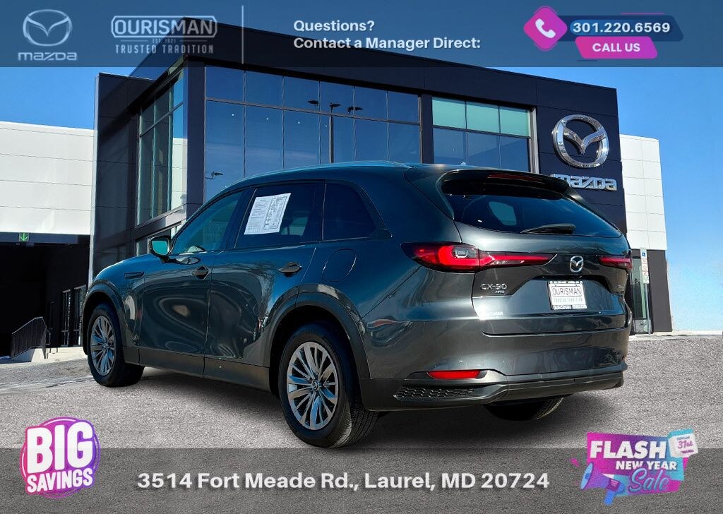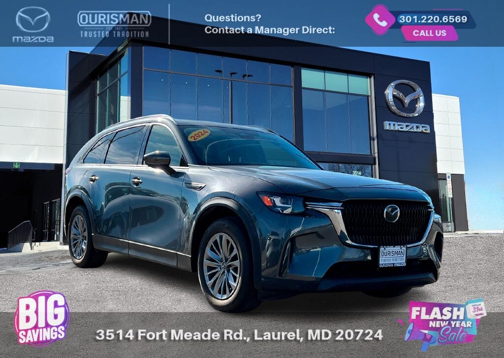 2024 Mazda CX-90 3.3 Turbo Preferred Plus Machine Gray AWD NAVIGATION/NAVI/NAV SYSTEM/GPS, SUNROOF/MOONROOF, BLUETOOTH/HANDS FREE, REAR VIEW CAMERA/BACKUP CAMERA, BLIND SPOT MONITORING SYSTEM, LANE KEEP ASSIST/LANE MITIGATION/ACTIVE LANE ASSIST, HEATED SEATS, APPLE CARPLAY/ANDROID AUTO, PRE-COLLISION SYSTEM/BRAKE SYSTEM, LEATHER INTERIOR, ACTIVE CRUISE CONTROL/ADAPTIVE CRUISE CONTROL, LOCALLY OWNED, SERVICED HERE, 3RD ROW SEATING/7 PASSENGER/8 PASSENGER, POWER LIFT GATE/POWER TAILGATE, No accidents or damage reported to CARFAX, AWD, ALL WHEEL DRIVE, POWER ADJUSTABLE SEATS, ADVANCED KEYLESS ENTRY, REAR CROSS TRAFFIC ALERT, SMARTPHONE WIRELESS CHARGER. Buyers should take pride in knowing that Maryland has one of the most comprehensive state inspections in the country. Awards: * ALG Residual Value Awards, Residual Value Awards We know you have done a great deal of research, and you don't have time for hours of back-and-forth negotiations. At Ourisman Laurel Campus, your hassle-free purchase is backed by our extensive Market Research. Our No-Haggle pricing ensures you the best value on your vehicle-no games, no gimmicks. Unlike our competitors, we don't add any additional fees to the posted price or certification. You pay only the posted price of the vehicle plus Sales tax, your registration and a MD processing charge of $800Not required by law. Come see why Ourisman Mazda, Mitsubishi, Hyundai, Nissan in Laurel (Ourisman Laurel Campus) offers you the best value for your money! Serving Frederick, Rockville, Hagerstown, Potomac, Baltimore, Silver Spring, DC, Howard County, Washington County, Montgomery County, Anne Arundel. Maryland State Inspected with over 120 point inspection performed by a trained technician. Buyers should take pride in knowing that Maryland has one of the most comprehensive state inspections in the country.