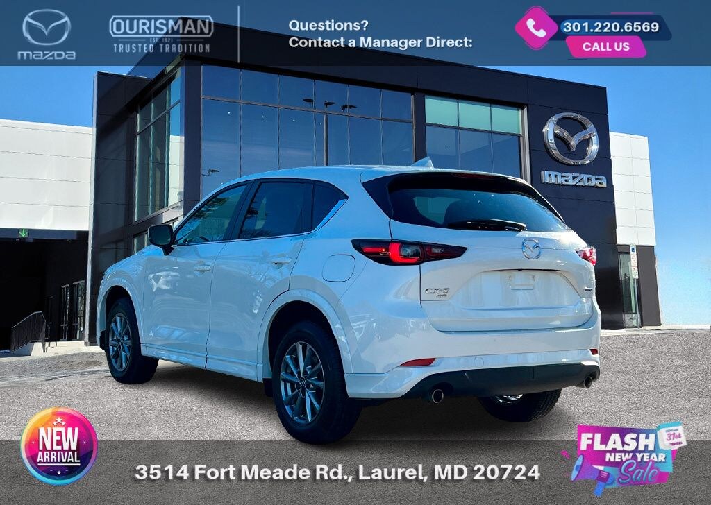 2025 Mazda CX-5 2.5 S Preferred Package White Metallic AWD CARFAX One-Owner. NAVIGATION/NAVI/NAV SYSTEM/GPS, SUNROOF/MOONROOF, BLUETOOTH/HANDS FREE, REAR VIEW CAMERA/BACKUP CAMERA, BLIND SPOT MONITORING SYSTEM, LANE KEEP ASSIST/LANE MITIGATION/ACTIVE LANE ASSIST, HEATED SEATS, APPLE CARPLAY/ANDROID AUTO, LEATHER INTERIOR, ACTIVE CRUISE CONTROL/ADAPTIVE CRUISE CONTROL, POWER LIFT GATE/POWER TAILGATE, No accidents or damage reported to CARFAX, AWD, ALL WHEEL DRIVE. Buyers should take pride in knowing that Maryland has one of the most comprehensive state inspections in the country. Awards: * ALG Residual Value Awards, Residual Value Awards We know you have done a great deal of research, and you don't have time for hours of back-and-forth negotiations. At Ourisman Laurel Campus, your hassle-free purchase is backed by our extensive Market Research. Our No-Haggle pricing ensures you the best value on your vehicle-no games, no gimmicks. Unlike our competitors, we don't add any additional fees to the posted price or certification. You pay only the posted price of the vehicle plus Sales tax, your registration and a MD processing charge of $800Not required by law. Come see why Ourisman Mazda, Mitsubishi, Hyundai, Nissan in Laurel (Ourisman Laurel Campus) offers you the best value for your money! Serving Frederick, Rockville, Hagerstown, Potomac, Baltimore, Silver Spring, DC, Howard County, Washington County, Montgomery County, Anne Arundel. Maryland State Inspected with over 120 point inspection performed by a trained technician. Buyers should take pride in knowing that Maryland has one of the most comprehensive state inspections in the country.