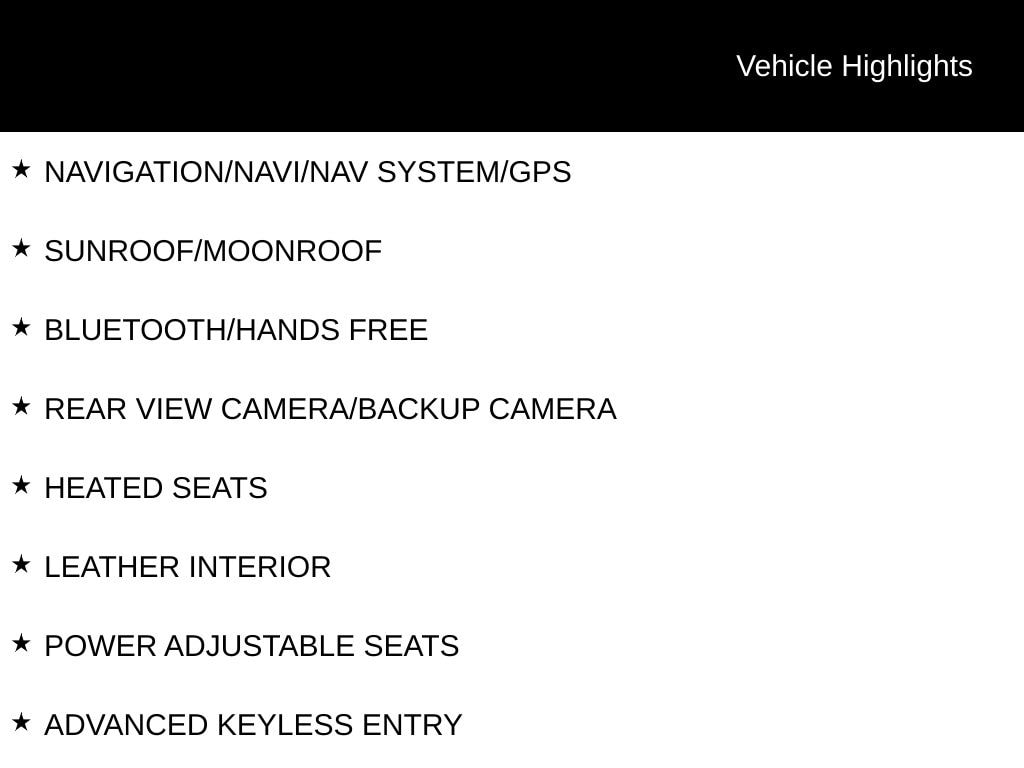 - REAR VIEW CAMERA/BACKUP CAMERA