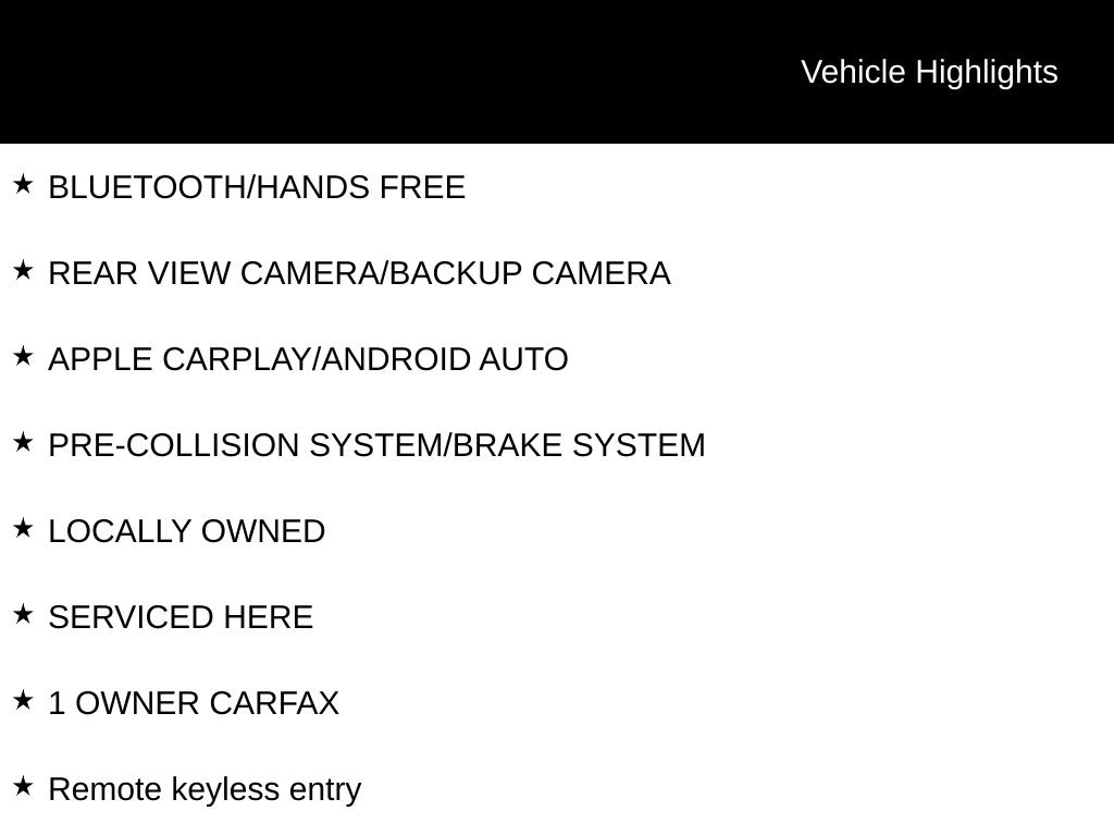 - Radio: AM/FM 8.0" Smartphone Link Display Audio