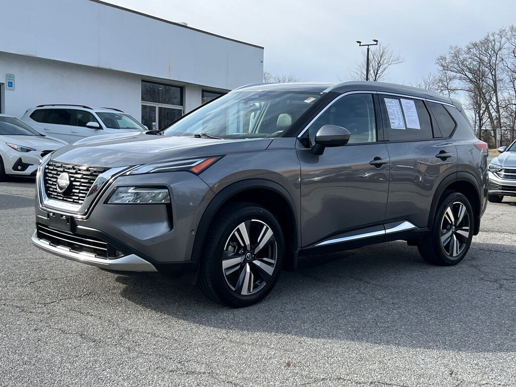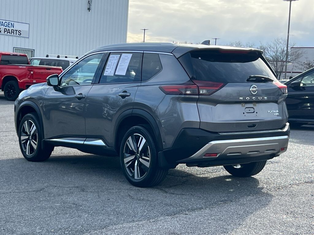 2021 Nissan Rogue Platinum Gun Metallic Maryland State Inspected with over 120 point inspection performed by a trained technician., AWD, 19" Aluminum Alloy Wheels, Black Splash Guards (Set of 4), Brake assist, Chrome Rear Bumper Protector, ELECTRONIC STABILITY CONTROL, Exterior Parking Camera Rear, First Aid Kit, Four wheel independent suspension, Front reading lights, Fully automatic headlights, Heads-Up Display, Heated door mirrors, HEATED FRONT BUCKET SEATS, HEATED REAR SEATS, MEMORY POWER DRIVER SEAT, Memory seat, Navigation system: NissanConnect Navigation, NissanConnect featuring Apple CarPlay and Android Auto, Power door mirrors, POWER LIFT GATE, Power steering, POWER SUNROOF, Power windows, Quilted Semi-Aniline Leather Seat Trim, REMOTE KEYLESS ENTRY, Steering wheel mounted audio controls, TRACTION CONTROL, Turn signal indicator mirrors.
