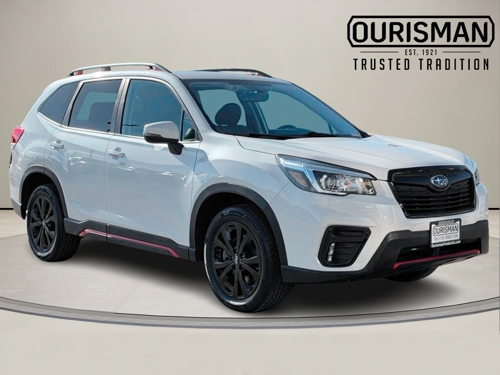 Used Subaru Forester Sport AWD for sale Frederick MD, 2019 Subaru Forester Sport all wheel drive SUV Crystal White Pearl, pre-owned Subaru Forester near Urbana MD, reliable used AWD SUV Maryland, Subaru Forester Sport Frederick County, used compact SUV with heated seats and AWD, Subaru dealer used inventory Frederick MD, affordable all wheel drive SUV near Hagerstown MD, Thurmont MD used Subaru Forester, Middletown MD AWD crossover, trusted used Subaru Frederick Maryland, Forester Sport AWD white exterior used car.