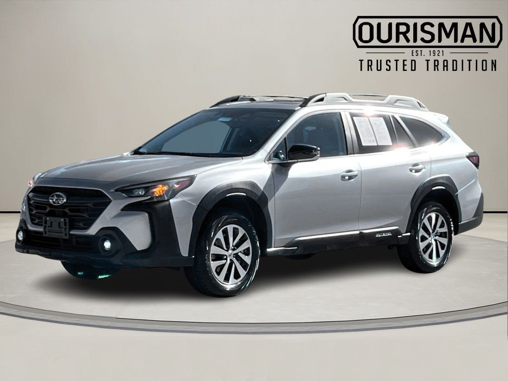 2025 Subaru Outback Premium Ice Silver Metallic Maryland State Inspected with over 120 point inspection performed by a trained technician., Apple CarPlay & Android Auto, Blind Spot Detection (BSD), BSD & RCTA & Keyless Access & Push Button Start, Cloth Upholstery, Hands-Free Power Rear Gate, Heated door mirrors, HEATED FRONT BUCKET SEATS, Keyless Access w/Push Button Start, MEMORY POWER DRIVER SEAT, Outside temperature display, Power door mirrors, Power Moonroof, Power steering, Power windows, Radio: Subaru 11.6" Multimedia System w/Navigation, Rear Cross Traffic Alert (RCTA), REMOTE KEYLESS ENTRY, Security system, Split folding rear seat, Steering wheel mounted audio controls, Turn signal indicator mirrors, Wheels: 17" x 7J Black Aluminum-Alloy. CARFAX One-Owner.