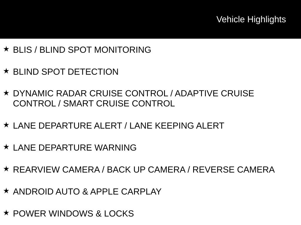- Adaptive Cruise Control: Full-Speed Range Dynamic Radar Cruise Control (DRCC)