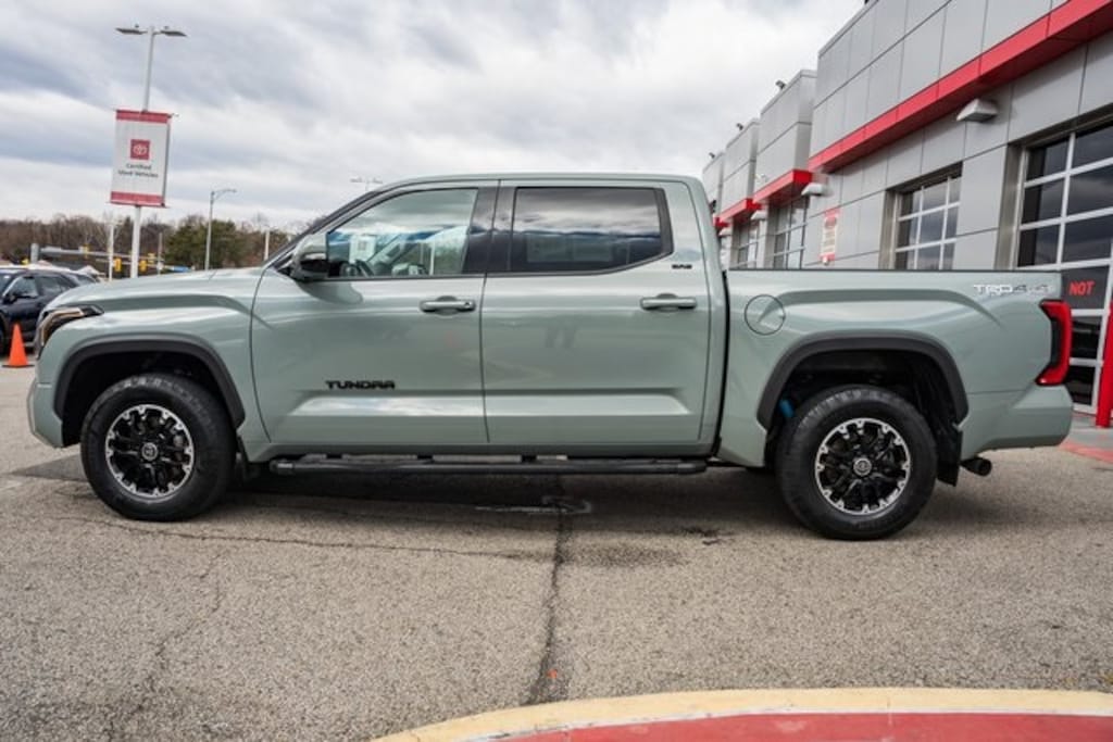 VOICE ACTIVATED NAVIGATION, NAVIGATION / GPS / NAV, TECHNOLOGY PACKAGE, BLIS / BLIND SPOT MONITORING / BLIND SIDE ALERT, DYNAMIC RADAR CRUISE CONTROL / ADAPTIVE CRUISE CONTROL / SMART CRUISE CONTROL, LANE DEPARTURE WARNING, LANE DEPARTURE ALERT / LANE KEEPING ALERT, LANE DEPARTURE w/ STEERING ASSIST, LANE DEPARTURE WARNING, REARVIEW CAMERA / BACK UP CAMERA / REVERSE CAMERA, REAR VIEW CAMERA W/DYNAMIC GUIDELINES, ANDROID AUTO & APPLE CARPLAY, HEATED FRONT ROW SEATS, POWER WINDOWS & LOCKS, FOUR WHEEL DRIVE / 4WD / 4X4, STEERING WHEEL AUDIO CONTROLS, CRUISE CONTROL, REAR CROSS TRAFFIC ALERT, PUSH-BUTTON START, PREMIUM AUDIO SOUND SYSTEM, POWER SLIDING REAR WINDOW, BLUETOOTH AUDIO STREAMING, ONE OWNER, HEATED STEERING WHEEL, DUAL ZONE A/C CONTROLS, BLUETOOTH, BACK UP / REVERSE SENSORS, BACK UP SENSORS, AUTOMATIC HIGH BEAMS, AUTO HIGH BEAMS, TOYOTA SAFETY SENSE, 4WD, Black w/Leather Seat Trim, 18" Alloy Wheels, 3.31 Axle Ratio, 32 Gallon Fuel Tank, 4-Wheel Disc Brakes, 9 Speakers, ABS brakes, Advanced Off-Road Technology Package, Air Conditioning, All Weather Floor Liners (TMS), Alloy wheels, AM/FM radio: SiriusXM, Apple CarPlay/Android Auto, Automatic temperature control, Bedside TRD Off Road Decal, Black Grille w/Chrome Surround, Blind Spot Monitor w/Lane Change Assist, Brake assist, Bumpers: body-color, Exterior Parking Camera Rear, Front & Rear Mud Guards, Front Bucket Seats, Front Center Armrest, Front fog lights, Front reading lights, Front Spoiler Delete, Fully automatic headlights, Low tire pressure warning, Multi-Terrain Back Monitor, Panic alarm, Parking Support Alert/Brake, Power steering, Power windows, Radio: Premium Audio, Rear reading lights, Remote keyless entry, Safety Connect, Security system, SofTex Seat Trim, Speed control, Speed-sensing steering, Split folding rear seat, Steering wheel mounted audio controls, Towing Package, Traction control, TRD Off-Road Premium Package, TRD Off-Road Suspension w/Bilstein Shocks, Variably intermittent wipers. 2022 Toyota Tundra SR5 TRD Off-Road Premium Pkg Tech Pkg Leather 4WD Lunar Rock 3.4L V6