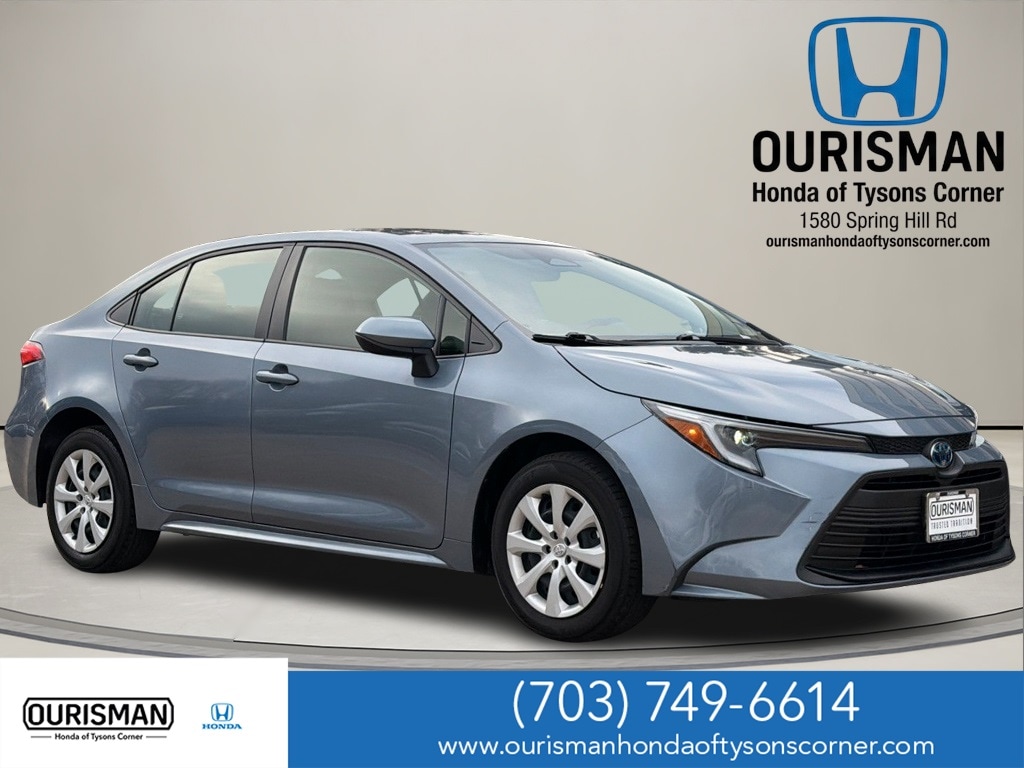 Experience outstanding fuel efficiency, modern technology, and legendary Toyota reliability in this 2023 Toyota Corolla Hybrid LE, available now at Ourisman Honda of Tysons Corner. A smart and efficient sedan for drivers throughout Tysons Corner, Vienna, McLean, Arlington, Fairfax, Ashburn, and the greater DMV area, the Corolla Hybrid LE delivers a smooth, quiet ride with impressive MPG that makes it ideal for daily commuting, rideshare use, and long highway drives. Powered by Toyotas proven hybrid powertrain paired with a smooth automatic transmission, this Corolla offers instant low-speed torque, excellent efficiency, and dependable performance with reduced fuel costs and emissions. The LE trim provides a comfortable and thoughtfully designed interior with supportive seating, automatic climate control, a digital driver display, and intuitive controls that make every drive easy and enjoyable. Inside, youll find a touchscreen infotainment system with Apple CarPlay and Android Auto compatibility, Bluetooth connectivity, a backup camera, and steering wheel-mounted controls for added convenience. The compact yet spacious cabin offers comfortable seating for passengers and a practical trunk for groceries, luggage, or daily essentials. Toyota Safety Sense comes standard, providing advanced safety features such as adaptive cruise control, lane departure alert with steering assist, pre-collision braking, pedestrian detection, and automatic high beams for added confidence on every drive. Known for its durability, strong resale value, and class-leading efficiency, the 2023 Toyota Corolla Hybrid LE remains one of the most reliable and economical sedans on the road. Fully inspected and ready for its next owner, this Corolla Hybrid offers efficiency, comfort, and peace of mind in one well-rounded package. Contact us today to schedule your test drive or secure this Corolla before its gone.