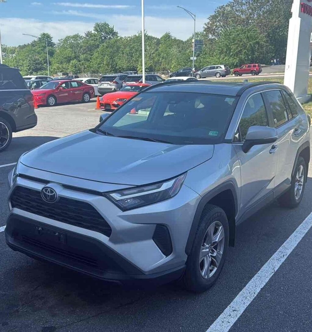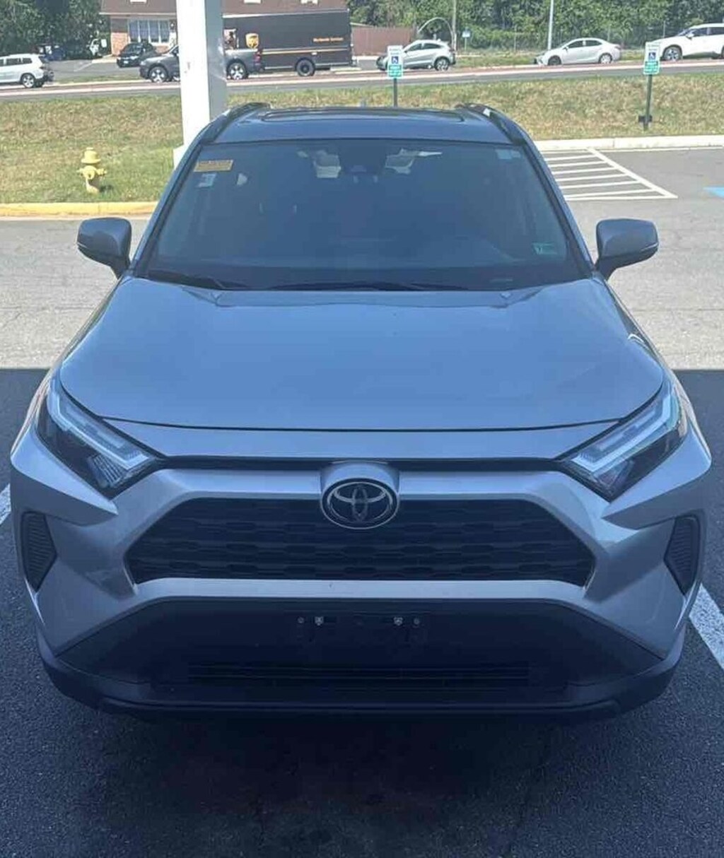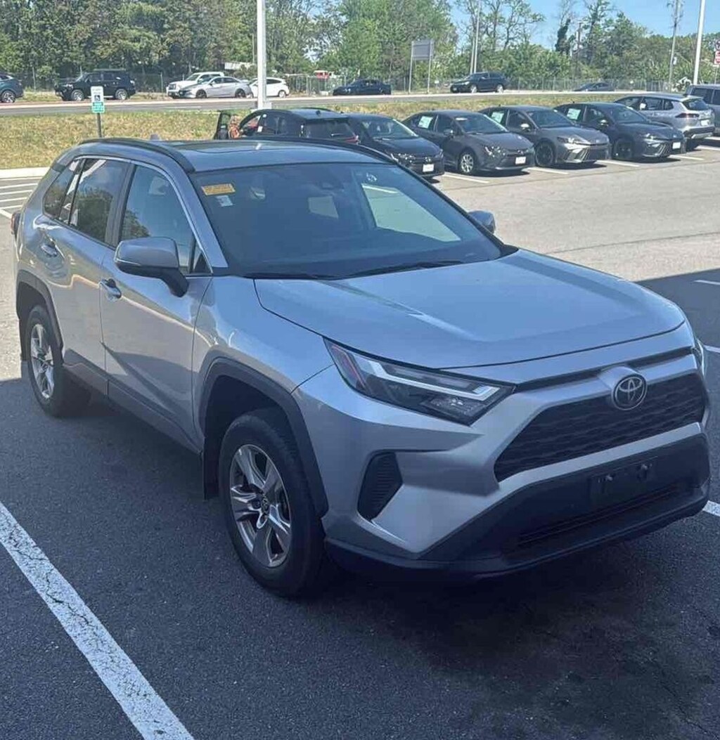 POWER MOONROOF / SUNROOF / POWER TILT SLIDING ROOF, BLIS / BLIND SPOT MONITORING / BLIND SIDE ALERT, DYNAMIC RADAR CRUISE CONTROL / ADAPTIVE CRUISE CONTROL / SMART CRUISE CONTROL, LANE DEPARTURE WARNING, LANE DEPARTURE ALERT / LANE KEEPING ALERT, LANE DEPARTURE w/ STEERING ASSIST, LANE DEPARTURE WARNING, REARVIEW CAMERA / BACK UP CAMERA / REVERSE CAMERA, REAR VIEW CAMERA W/DYNAMIC GUIDELINES, ANDROID AUTO & APPLE CARPLAY, HANDS FREE LIFTGATE / POWER LIFT GATE / AUTOMATIC LIFT GATE, POWER WINDOWS & LOCKS, ALL WHEEL DRIVE / AWD, STEERING WHEEL AUDIO CONTROLS, CRUISE CONTROL, REAR CROSS TRAFFIC ALERT, PUSH-BUTTON START, BLUETOOTH AUDIO STREAMING, BLUETOOTH & BLUETOOTH STREAMING, BLUETOOTH HANDS-FREE PHONE SYSTEM, ONE OWNER, BLUETOOTH, AUTOMATIC HIGH BEAMS, AUTO HIGH BEAMS, TOYOTA SAFETY SENSE, WIRELESS ANDROID AUTO, WIRELESS APPLE CAR PLAY, 4-Wheel Disc Brakes, 6 Speakers, ABS brakes, Air Conditioning, Alloy wheels, Auto High-beam Headlights, Automatic temperature control, Axle Ratio: 3.177, Brake assist, Bumpers: body-color, Convenience Package, Delay-off headlights, Electronic Stability Control, Exterior Parking Camera Rear, Fabric Seat Trim, Four wheel independent suspension, Front Bucket Seats, Front Center Armrest, Front Door Smart Key System w/Push Button Start, Front dual zone A/C, Front reading lights, Fully automatic headlights, Illuminated entry, Low tire pressure warning, Panic alarm, Passenger door bin, Power driver seat, Power steering, Power windows, Radio data system, Radio: AM/FM/XM Audio System, Rear seat center armrest, Rear window defroster, Rear window wiper, Remote keyless entry, Speed control, Speed-sensing steering, Split folding rear seat, Spoiler, Steering wheel mounted audio controls, Tilt & Slide Moon Roof, Tilt steering wheel, Traction control, Trip computer, Variably intermittent wipers, Wheels: 17" 5-Spoke Silver Alloy. 2023 Toyota RAV4 XLE AWD Silver Sky Metallic 2.5L 4-Cylinder DOHC Dual VVT-i