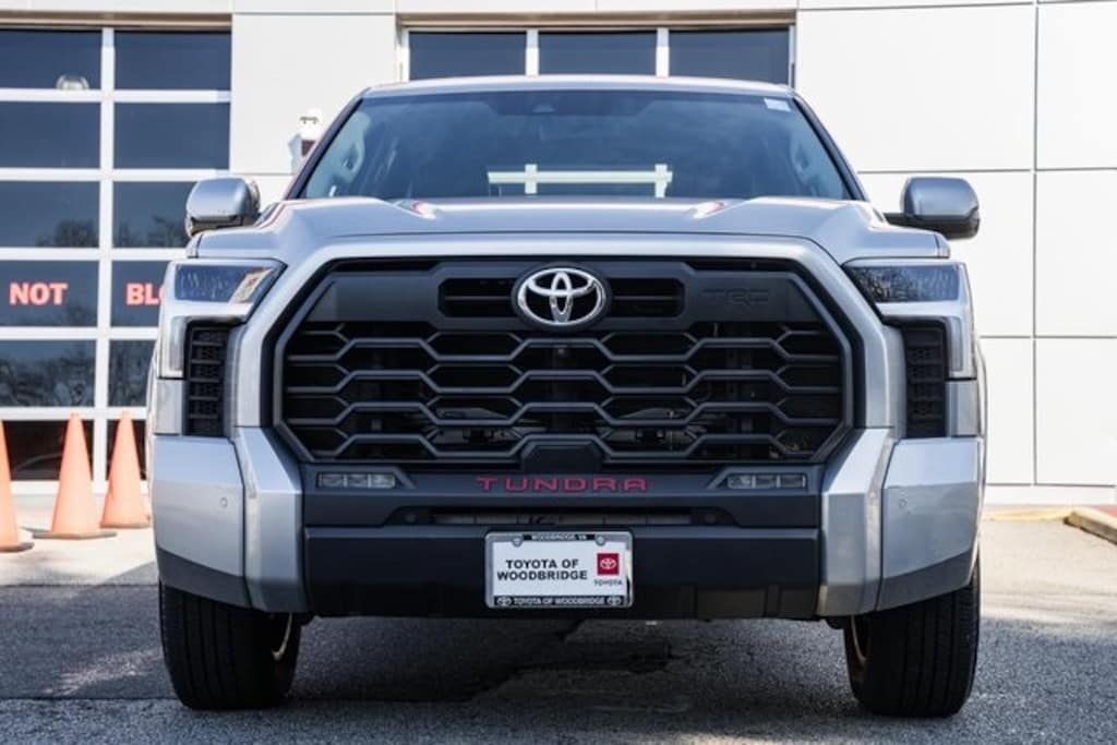 VOICE ACTIVATED NAVIGATION, NAVIGATION / GPS / NAV, TECHNOLOGY PACKAGE, BLIS / BLIND SPOT MONITORING / BLIND SIDE ALERT, DYNAMIC RADAR CRUISE CONTROL / ADAPTIVE CRUISE CONTROL / SMART CRUISE CONTROL, LANE DEPARTURE WARNING, LANE DEPARTURE ALERT / LANE KEEPING ALERT, LANE DEPARTURE w/ STEERING ASSIST, LANE DEPARTURE WARNING, REARVIEW CAMERA / BACK UP CAMERA / REVERSE CAMERA, REAR VIEW CAMERA W/DYNAMIC GUIDELINES, ANDROID AUTO & APPLE CARPLAY, HEATED FRONT ROW SEATS, POWER WINDOWS & LOCKS, FOUR WHEEL DRIVE / 4WD / 4X4, STEERING WHEEL AUDIO CONTROLS, CRUISE CONTROL, REAR CROSS TRAFFIC ALERT, PUSH-BUTTON START, PREMIUM AUDIO SOUND SYSTEM, POWER SLIDING REAR WINDOW, BLUETOOTH AUDIO STREAMING, ONE OWNER, HEATED STEERING WHEEL, DUAL ZONE A/C CONTROLS, BLUETOOTH, BACK UP / REVERSE SENSORS, BACK UP SENSORS, AUTOMATIC HIGH BEAMS, AUTO HIGH BEAMS, TOYOTA SAFETY SENSE, 4WD, Black w/SofTex Seat Trim, 3.31 Axle Ratio, 32 Gallon Fuel Tank, 4-Wheel Disc Brakes, 9 Speakers, ABS brakes, Advanced Technology Package, Air Conditioning, Alloy wheels, Apple CarPlay/Android Auto, Automatic temperature control, Bedside TRD Sport Decal, Blind Spot Monitor, Blind Spot Monitor w/Lane Change Assist, Brake assist, Bumpers: body-color, Electronic Stability Control, Exterior Parking Camera Rear, Front Bucket Seats, Front Center Armrest, Front fog lights, Front reading lights, Fully automatic headlights, Low tire pressure warning, Multi-Terrain Back Monitor, Panic alarm, Parking Support Alert/Brake, Passenger door bin, Power steering, Power windows, Radio data system, Radio: Audio Multimedia System, Radio: Premium Audio, Rear window defroster, Remote keyless entry, Safety Connect, Security system, SofTex Seat Trim, Speed control, Speed-sensing steering, Split folding rear seat, Steering wheel mounted audio controls, Towing Package, Traction control, TRD Sport Premium Package, TRD Sport-Tuned & Lowered Suspension, Variably intermittent wipers, Wheels: 20" Black Alloy. 2023 Toyota Tundra SR5 TRD Sport Prem Pkg 4WD Celestial Silver 3.4L V6