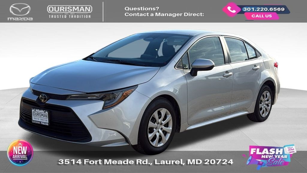 2024 Toyota Corolla LE Classic Silver FWD CARFAX One-Owner. BLUETOOTH/HANDS FREE, REAR VIEW CAMERA/BACKUP CAMERA, LANE KEEP ASSIST/LANE MITIGATION/ACTIVE LANE ASSIST, APPLE CARPLAY/ANDROID AUTO, 1 OWNER CARFAX. Buyers should take pride in knowing that Maryland has one of the most comprehensive state inspections in the country. Awards: * ALG Residual Value Awards, Residual Value Awards We know you have done a great deal of research, and you don't have time for hours of back-and-forth negotiations. At Ourisman Laurel Campus, your hassle-free purchase is backed by our extensive Market Research. Our No-Haggle pricing ensures you the best value on your vehicle-no games, no gimmicks. Unlike our competitors, we don't add any additional fees to the posted price or certification. You pay only the posted price of the vehicle plus Sales tax, your registration and a MD processing charge of $800Not required by law. Come see why Ourisman Mazda, Mitsubishi, Hyundai, Nissan in Laurel (Ourisman Laurel Campus) offers you the best value for your money! Serving Frederick, Rockville, Hagerstown, Potomac, Baltimore, Silver Spring, DC, Howard County, Washington County, Montgomery County, Anne Arundel. Maryland State Inspected with over 120 point inspection performed by a trained technician. Buyers should take pride in knowing that Maryland has one of the most comprehensive state inspections in the country.