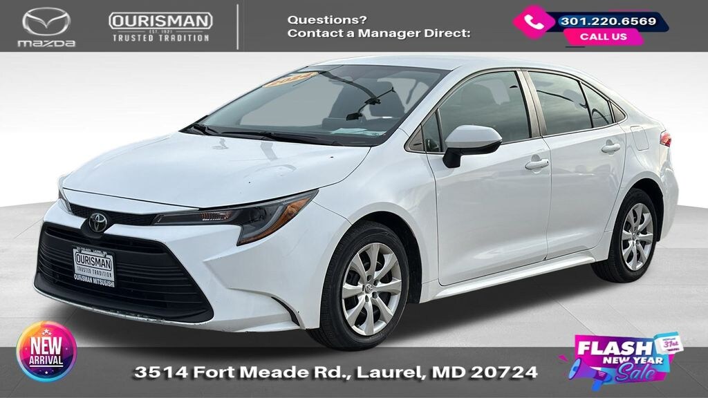 2024 Toyota Corolla LE Ice FWD CARFAX One-Owner. BLUETOOTH/HANDS FREE, REAR VIEW CAMERA/BACKUP CAMERA, LANE KEEP ASSIST/LANE MITIGATION/ACTIVE LANE ASSIST, APPLE CARPLAY/ANDROID AUTO, PRE-COLLISION SYSTEM/BRAKE SYSTEM, ACTIVE CRUISE CONTROL/ADAPTIVE CRUISE CONTROL, No accidents or damage reported to CARFAX, 1 OWNER CARFAX, ADVANCED KEYLESS ENTRY. Buyers should take pride in knowing that Maryland has one of the most comprehensive state inspections in the country. Awards: * ALG Residual Value Awards, Residual Value Awards We know you have done a great deal of research, and you don't have time for hours of back-and-forth negotiations. At Ourisman Laurel Campus, your hassle-free purchase is backed by our extensive Market Research. Our No-Haggle pricing ensures you the best value on your vehicle-no games, no gimmicks. Unlike our competitors, we don't add any additional fees to the posted price or certification. You pay only the posted price of the vehicle plus Sales tax, your registration and a MD processing charge of $800Not required by law. Come see why Ourisman Mazda, Mitsubishi, Hyundai, Nissan in Laurel (Ourisman Laurel Campus) offers you the best value for your money! Serving Frederick, Rockville, Hagerstown, Potomac, Baltimore, Silver Spring, DC, Howard County, Washington County, Montgomery County, Anne Arundel. Maryland State Inspected with over 120 point inspection performed by a trained technician. Buyers should take pride in knowing that Maryland has one of the most comprehensive state inspections in the country.