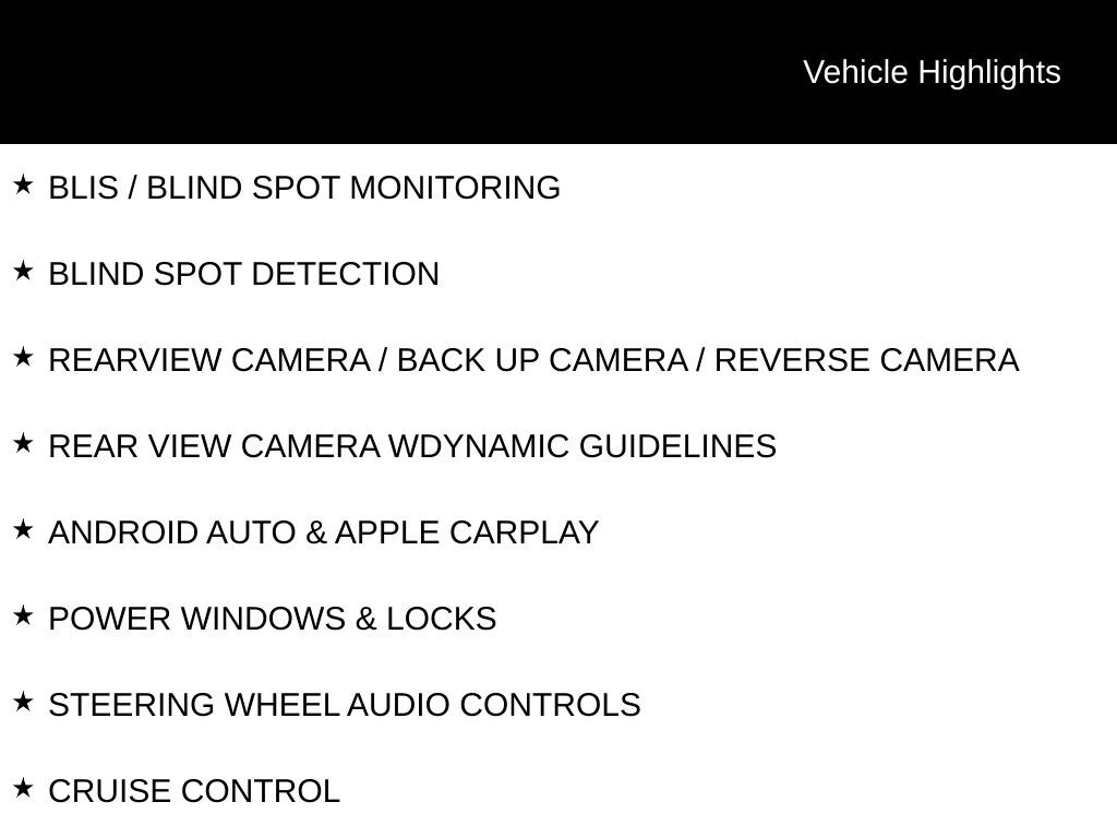 - Rear collision: Rear Cross Traffic Alert mitigation